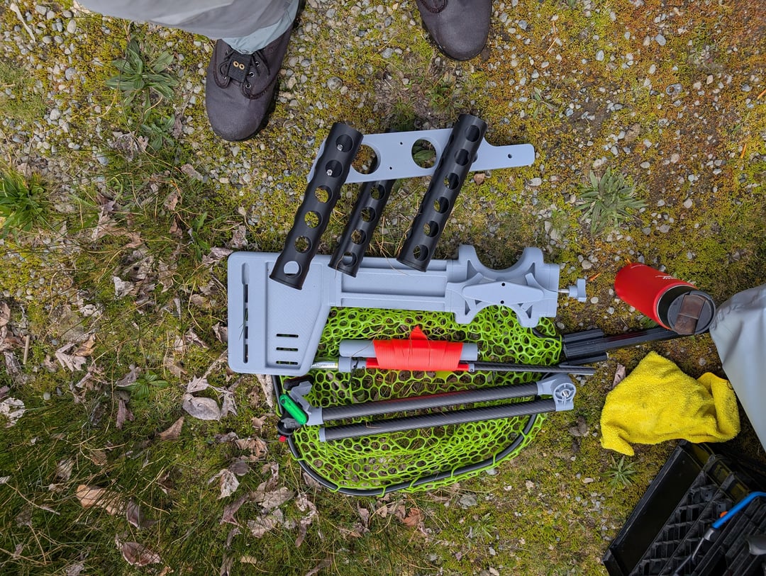 I took the new kayak out once shortly after I bought it to make sure everything works, but since then I hadn't had the opportunity to get it out (PNW U.S. weather coupled with work). But I did have usually Friday nights, a computer, and a 3D printer so I designed and printed up a number of accessories to flesh out my pedal kayak for Kokanee trolling. For me, this means two rods deployed, a downrigger, and fish-finder/transducer. I made extended rod bases to make the most of the very short kayak track that came with the kayak, a downrigger mount that attaches to the strapped-in beach chair, the Tactical Fish Landing Net Funnel 3000 so I could re-sheath my net behind my chair into the rod sleeves while continuing to pedal, "rocket launchers" that attach to the downrigger mount for rod storage, TPU feet for my strapped-in beach chair so it didn't slide all around which was the biggest issue. Also made my own boom base/mount, folding camera boom with Temu nav lights, a folding flag/light pole with rechargeable Temu lantern (kind of an unabashed copy of the Yak Attack carbon version I use on my other kayak, but doesn't go through 18$ replacement LED like no tomorrow).