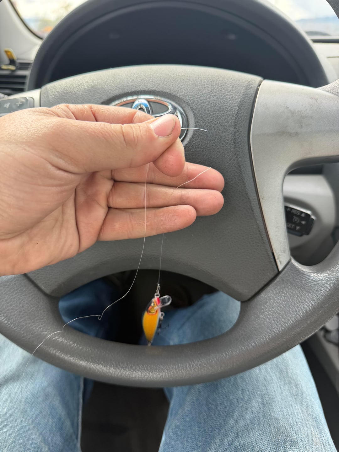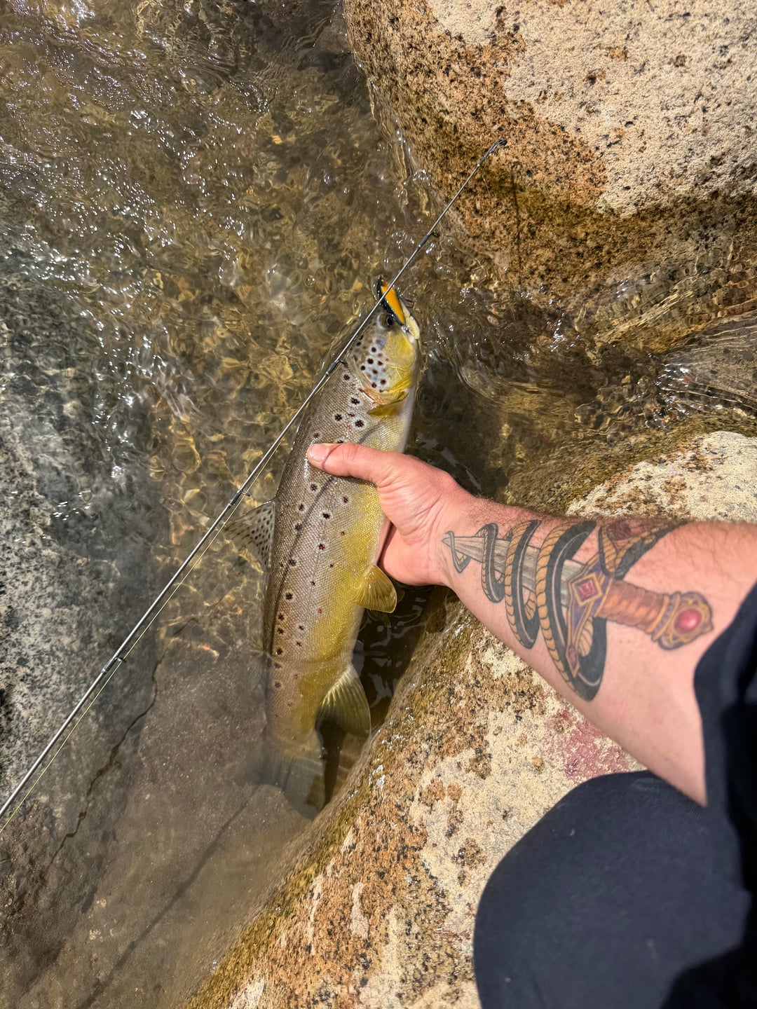 Managed to catch this brown on the last cast I could make on my lunch break. Miracle I pulled it in at all, somehow the line broke and tied itself back onto the front treble (second photo is after I untangled the line). However that worked out, got my first fish of the year and my second brown ever.