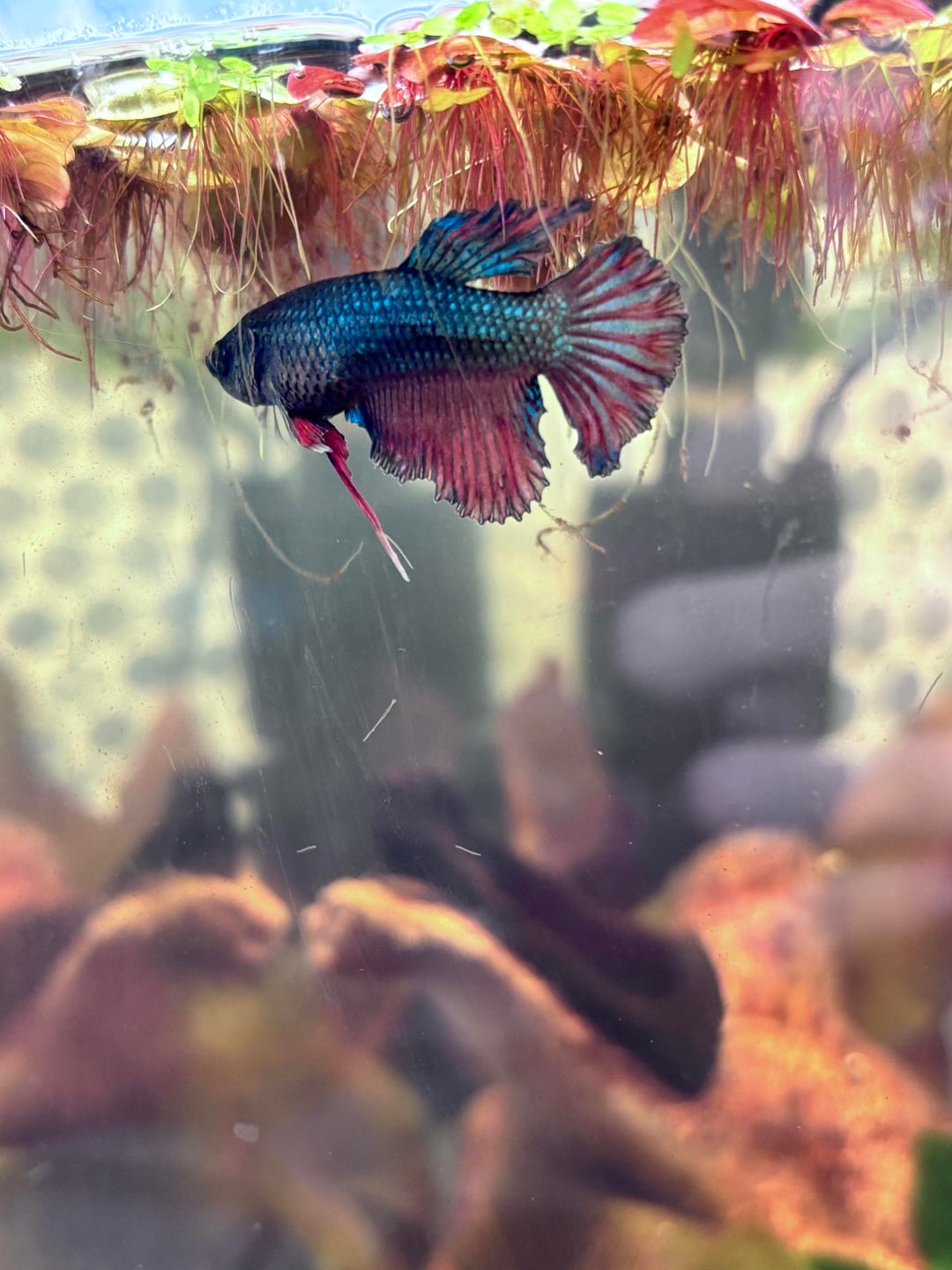 Snatched this little guy from petsmart. These photos are 9 days apart!! His cup said “platinum betta” which I’m pretty sure isn’t true. I’m not sure if he’s a plakat or a longer finned betta with a bad case of fin rot, but either way I love him.