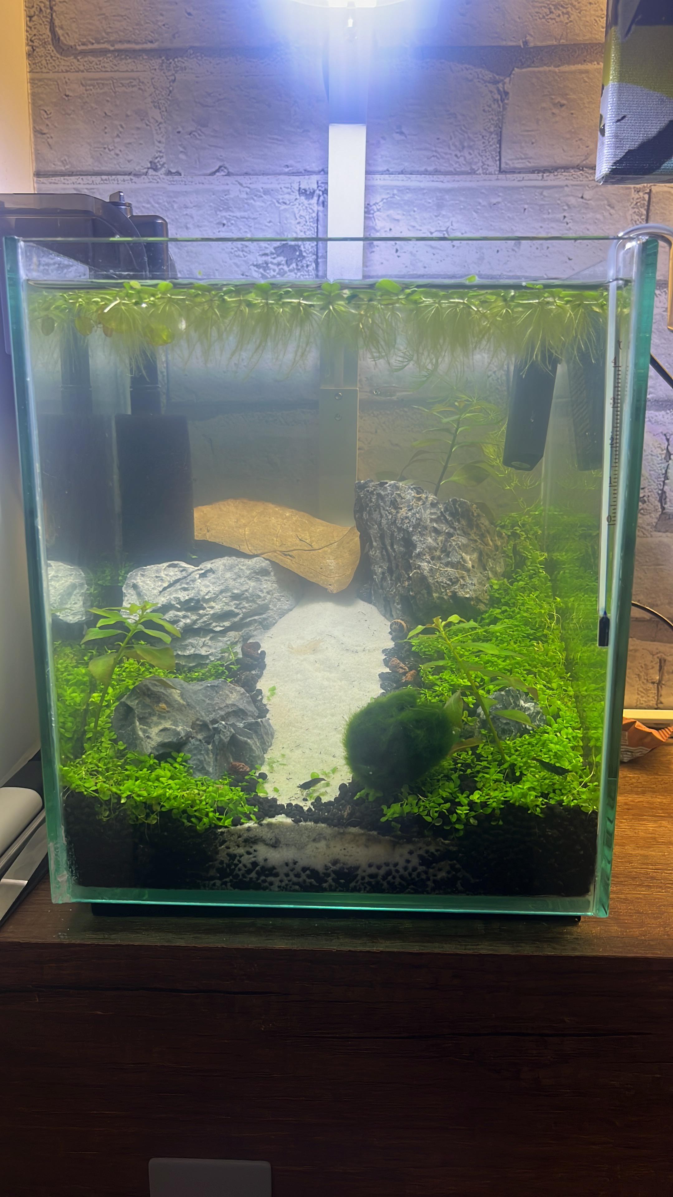 Hello! i set up an 8 liter tank for some neocaridnia shrimp and approximately 3 months later i added 10 shrimp into the tank and everything was going smoothly. filter is running perfectly and ive been testing consistently and all was good and stable. i then decided to add a small piece of almond leaf for some added surface for the shrimp to graze on and 2 days later the water became very cloudy. Im assuming itās a bacterial bloom and it didnāt clear for another 2 days so i did a 20% water change and that didnāt help so i removed the leaf and 6 days since then and the water is still cloudy. ive been testing my parameters using API test kit and ive had 0 ammonia 0nitrite and 5ppm nitrate. TDS is 220ppm. GH 9 KH 3.