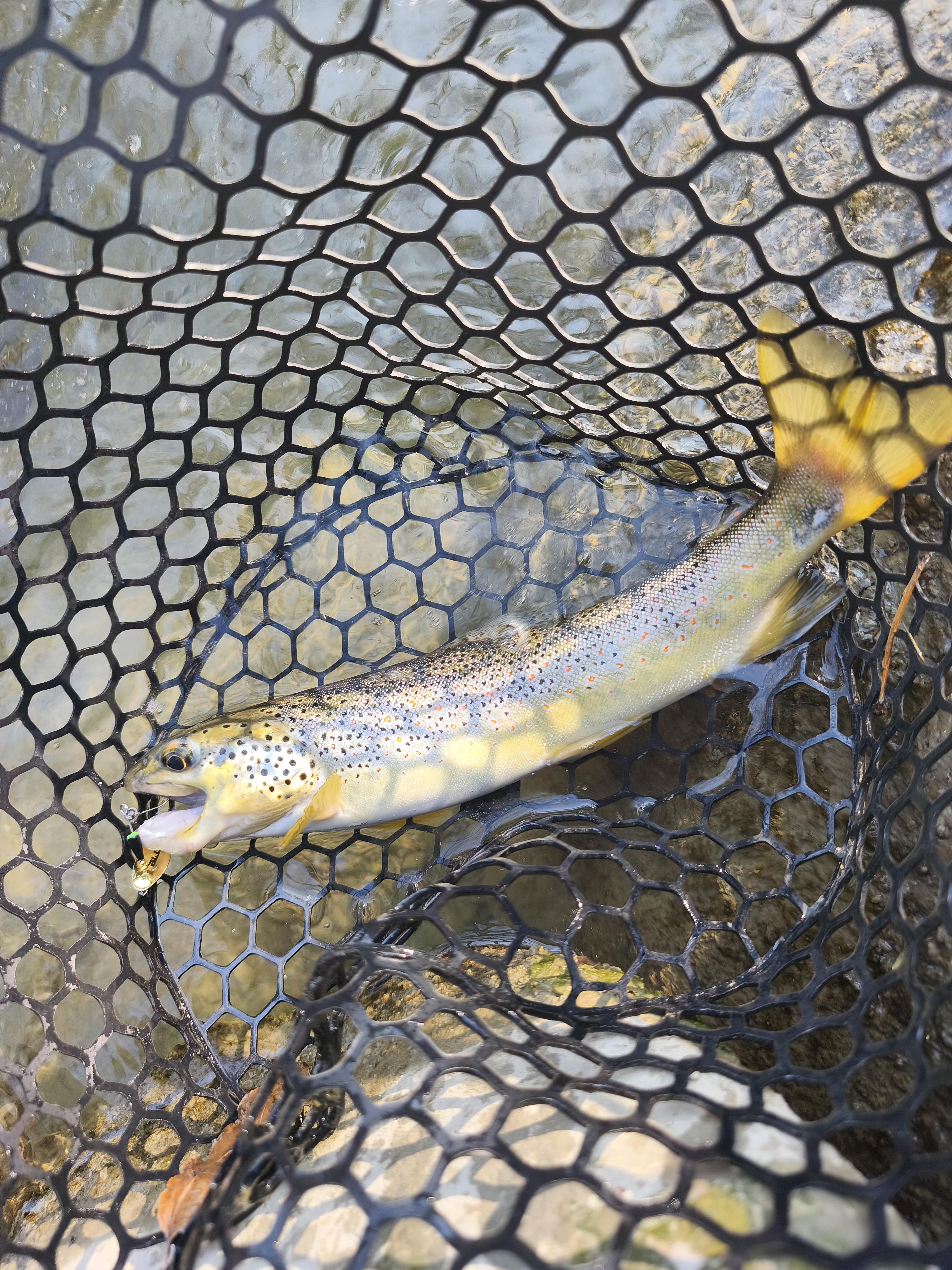 hello y'all, here is the first native brown trout of this spring from a creek in the northern Appennini. Just wanted to read some of your opinions its mouth looks a bit odd and has a scar near the tail. Anyway released, I know under wich rock lives.
