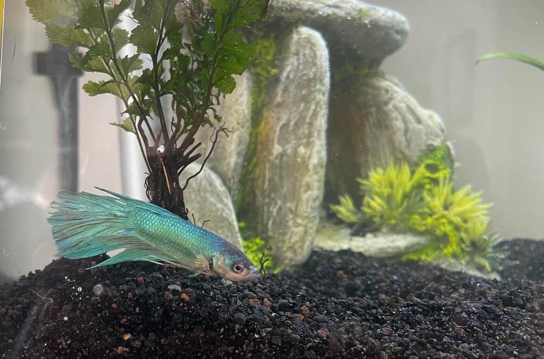This is Luma 💙 day 1 (first two pics) and today (last pic) about three weeks apart. Wild to me how much he’s changed! 10 gallon tank with lots of live plants and spots to hide have really helped bring out his personality, still adding more to make his space as comfortable for him as I can. First time betta owner and love my little guy