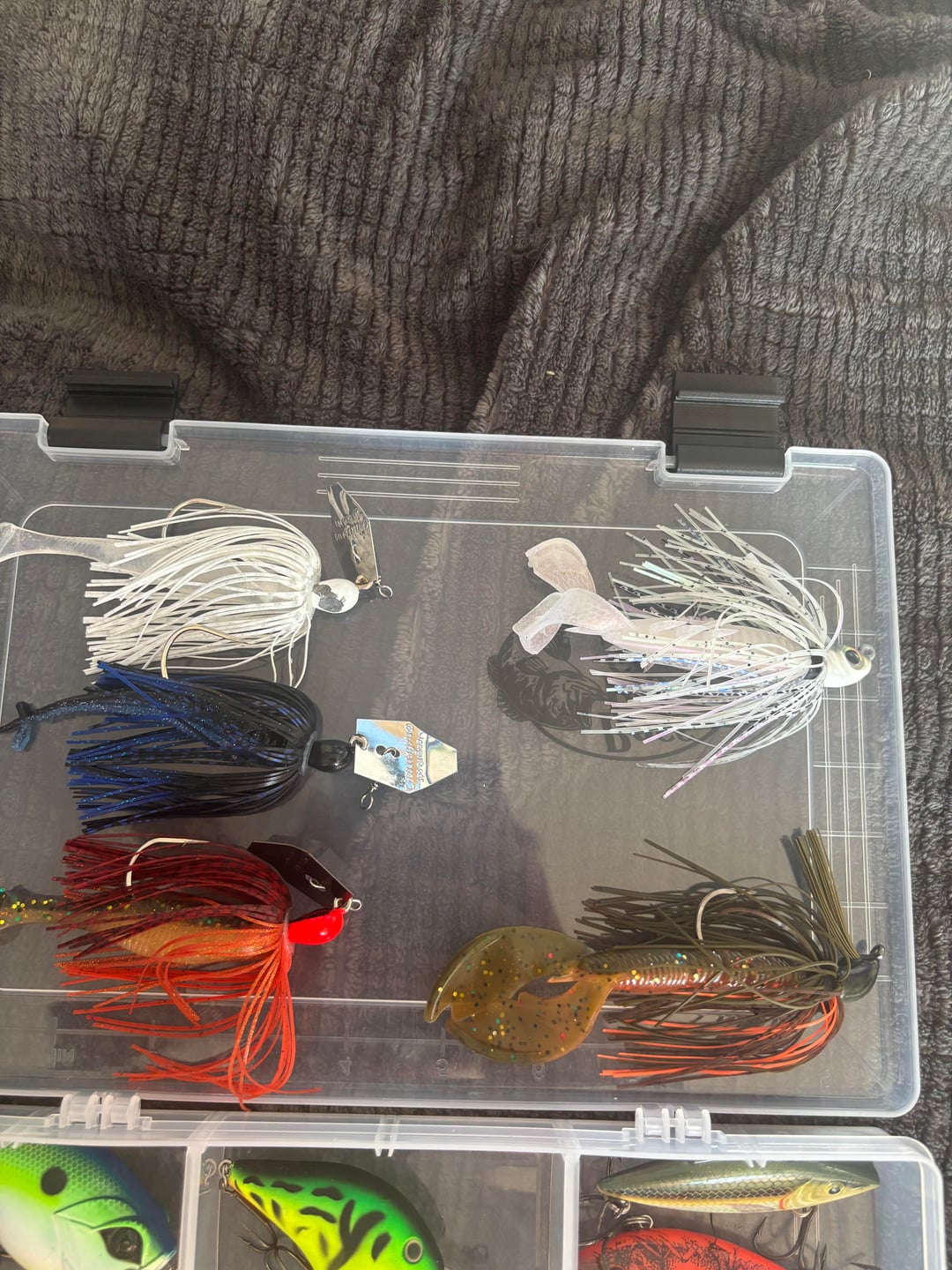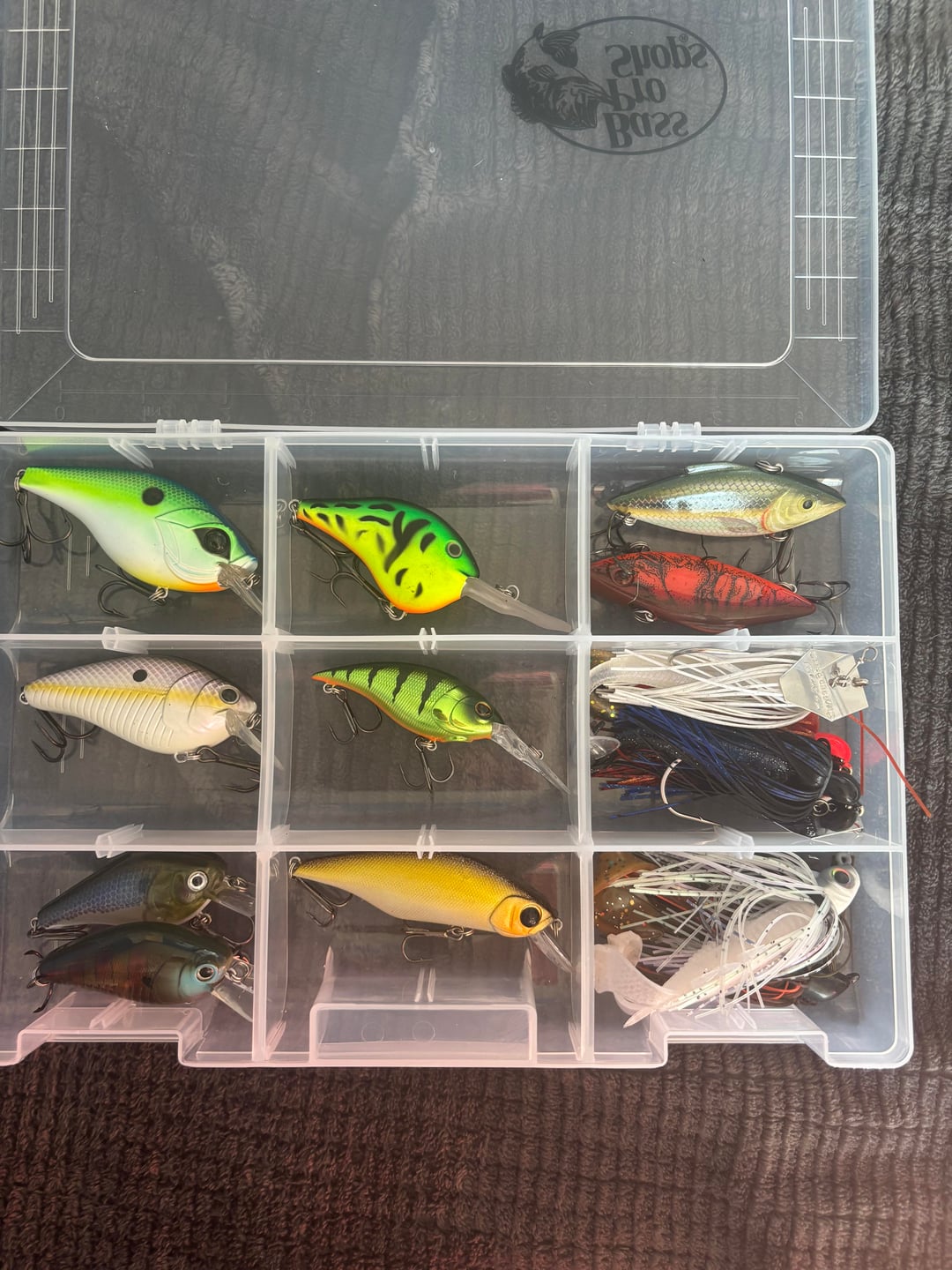 1. Love the color choices. I don’t have your crankbait confidence. I use more lipless in red, chrome and other shad or bluegill patterns along with suspending thinner profile Rapalas. I also have a similar mix of chatterbaits in smaller sizes and swim jigs. Honestly wouldn’t get rid of anything in your pics and I can tell you choose carefully. You make me think I need more fire tiger in my life…..