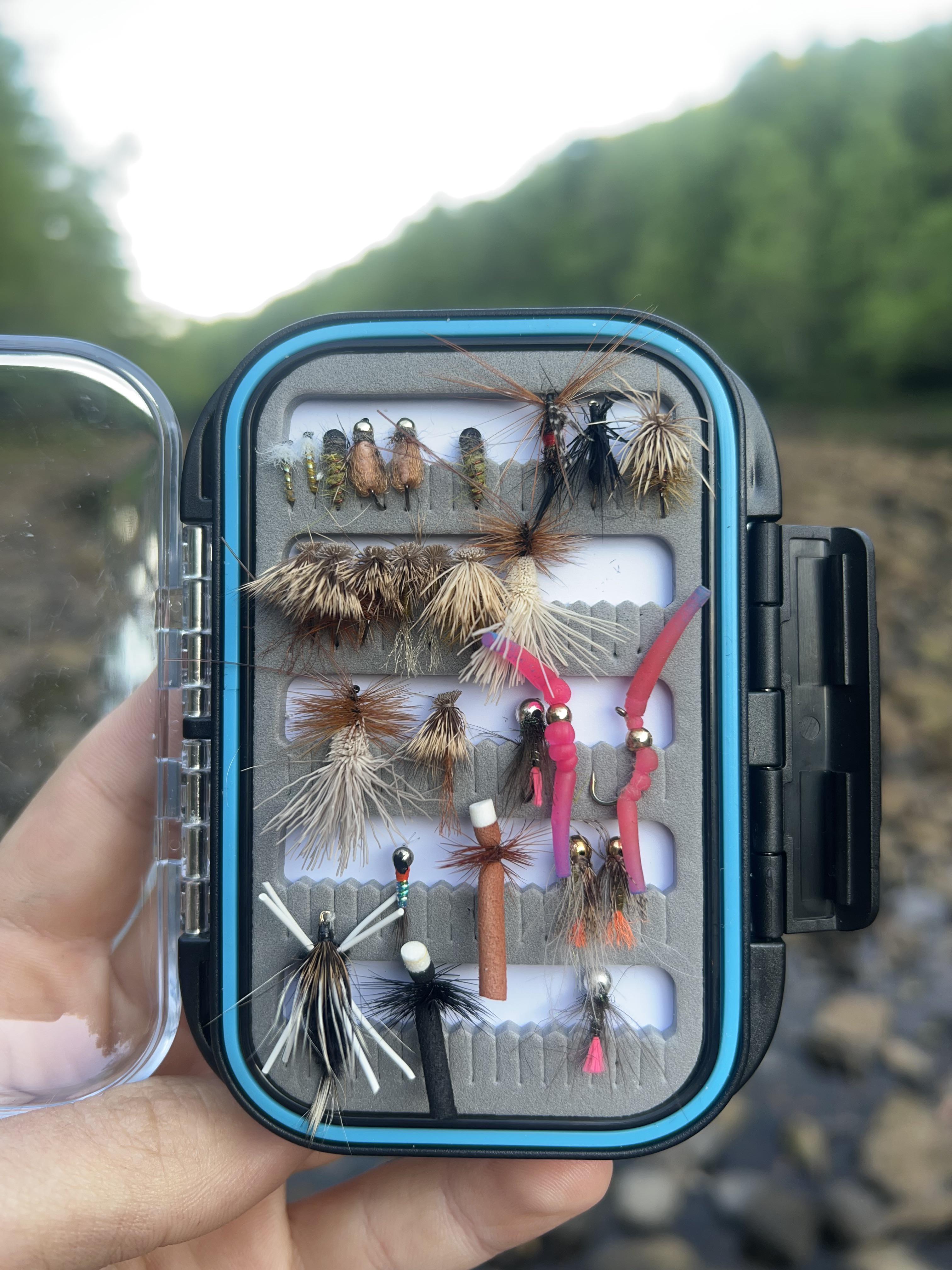 7. I’d add some smaller patterns. Hard to tell for sure, but the dry flies look like 12s or 14s maybe, and if they’re hitting midges, I’d start with 18s or 20s, maybe a small (18/20) parachute Adams, and trail a 20 zebra midge or other midge pattern. Around here (CO) I love Manhattan Midges for that. Or just use a bigger caddis as your dry fly and trail a midge pattern behind that.