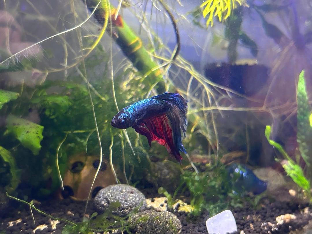 Food: frozen blood worms and Ultra fresh Betta pro shrimp patties pellets. I do blood worms not as often as the pellets. Pellets usually 4-5 a day total. Unless I do worms that day then about few worms and like two or three pellets.