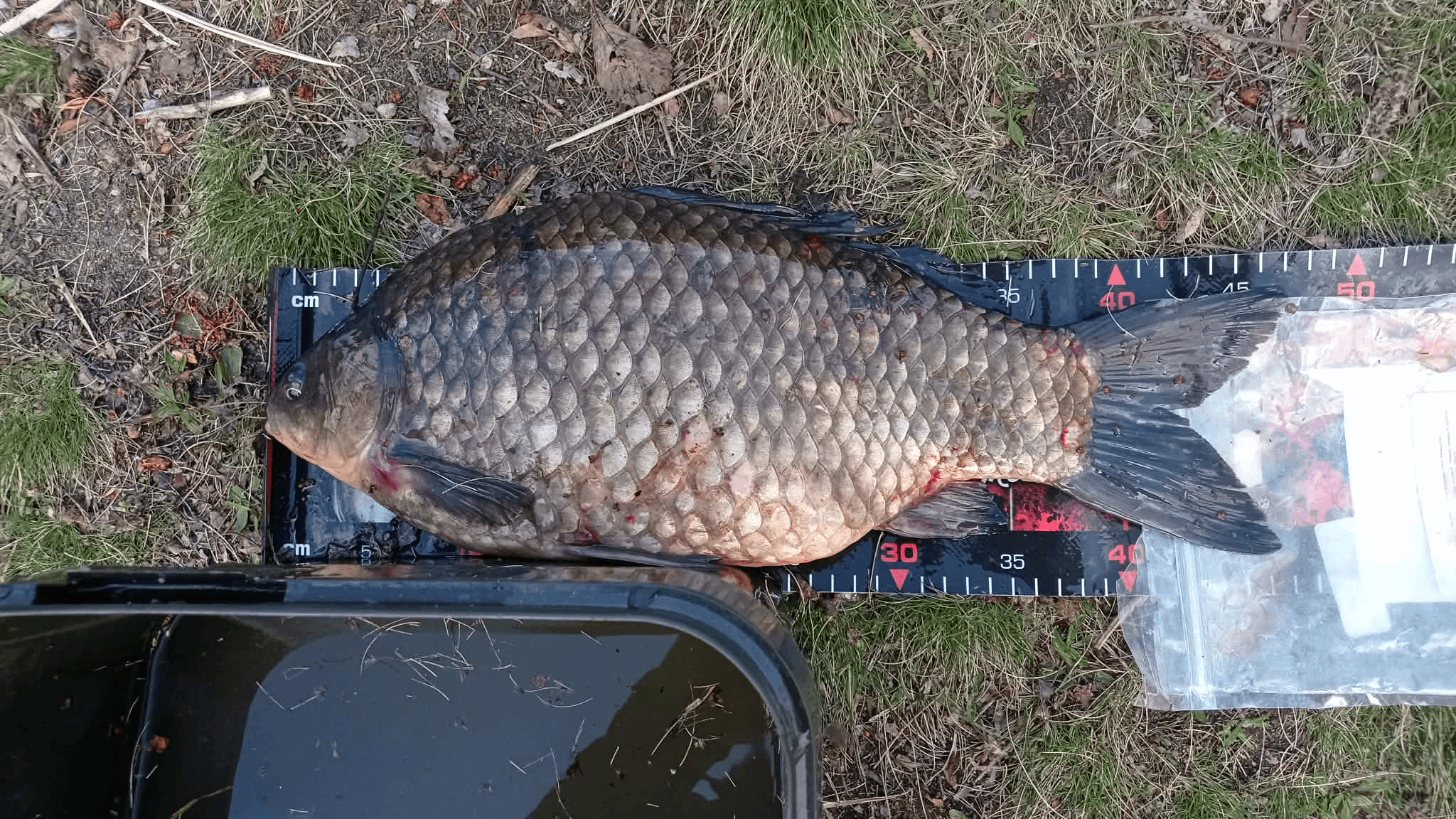 Measuring 47cm and weighting around 2,15kg it's easily the biggest Prussian Carp I've landed (the ones I landed before didn't exceed 0,5kg). It's also a trophy fish I can report to get a commendation from the angler's association (Lenght over 45cm is Silver commendation, weight over 2kg is Gold commendation).