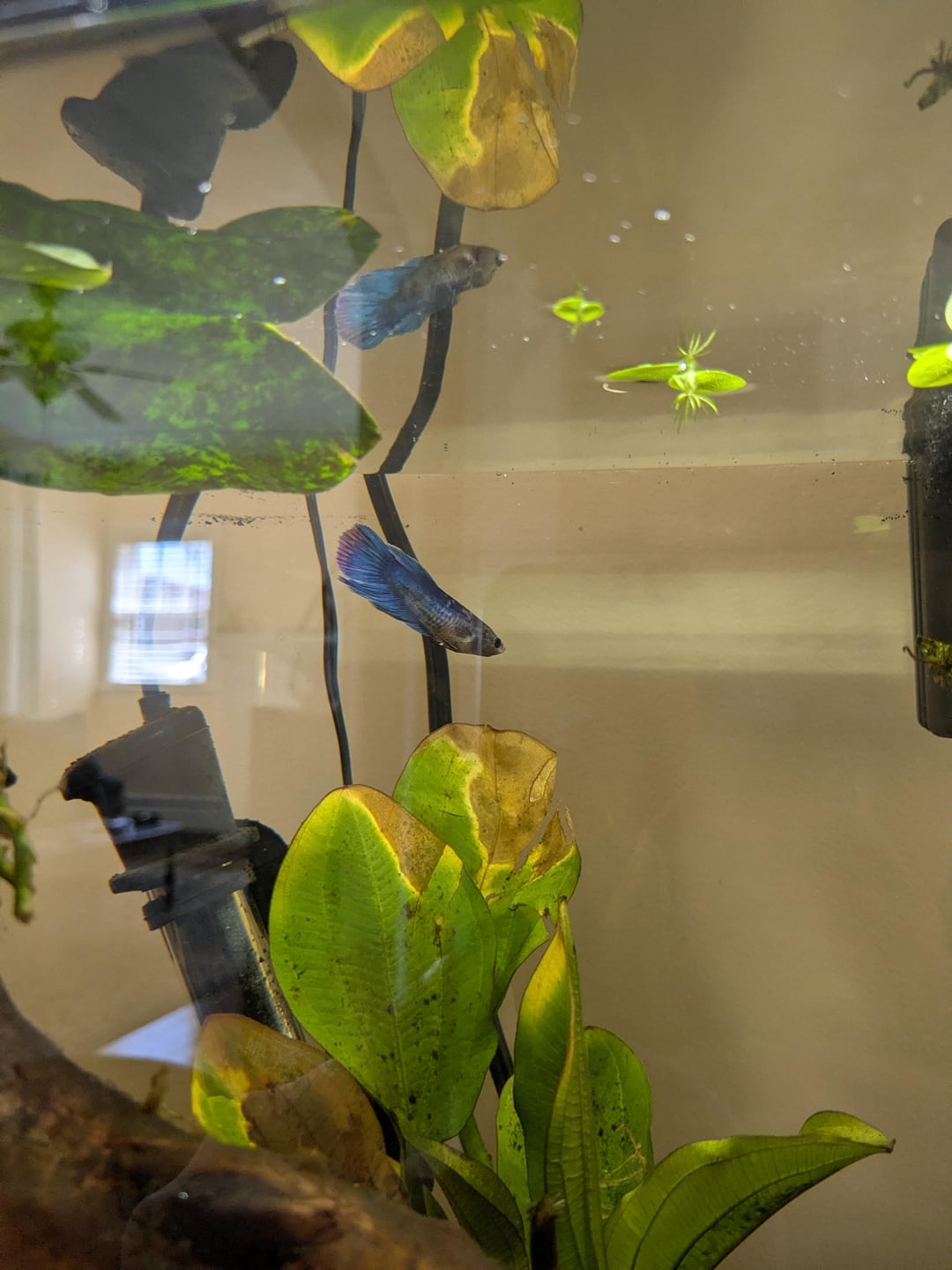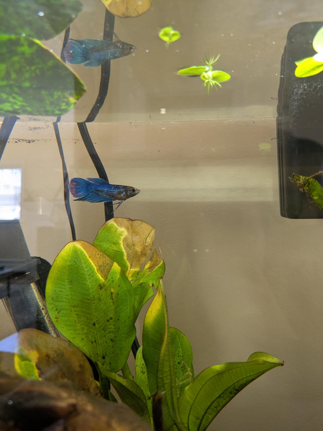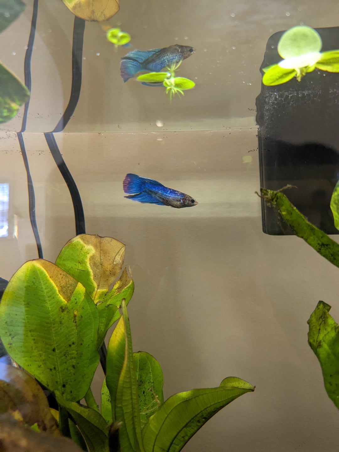 She's been glass surfing constantly which is concerning me. Also, she wouldn't eat this morning when I tried to feed her Betta specific pellets by Betta Bio Gold.