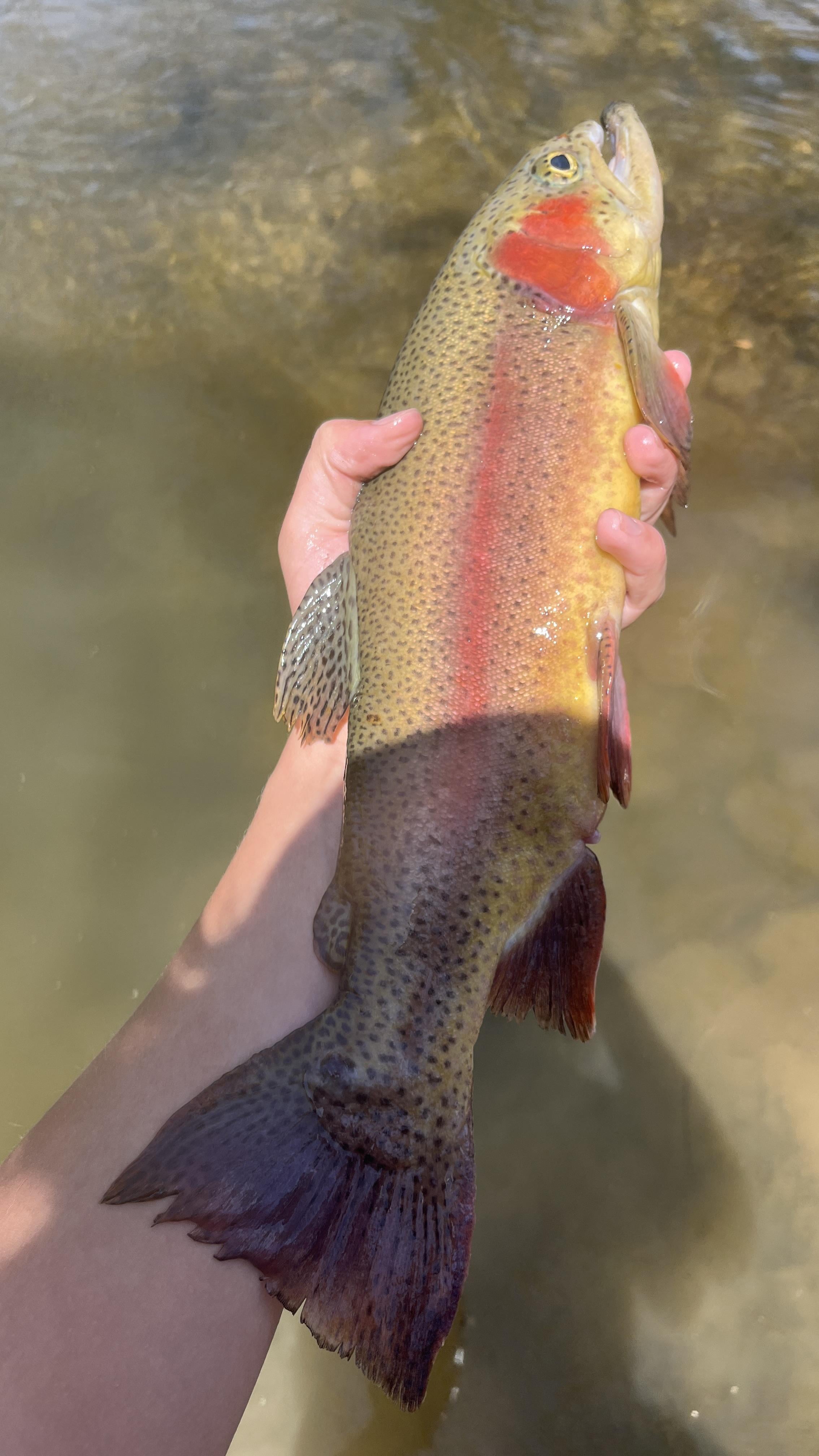 Got this beautiful fish today in maryland on a spinner after fly fishing for a while i. a creek that was stocked a couple days before. Ive never see a rainbow stocker like this. Is it a hybrid?