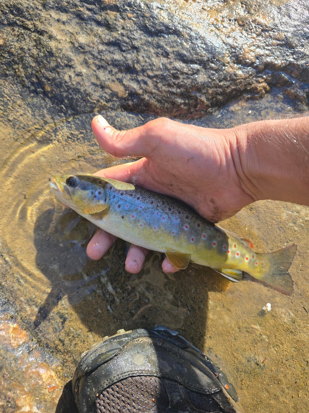 First wild brown I've caught. Most places around me just have stockers. Hiked like 3 miles in for this guy and didn't catch anything else 😅🤷♂️. Posted by pkwilli