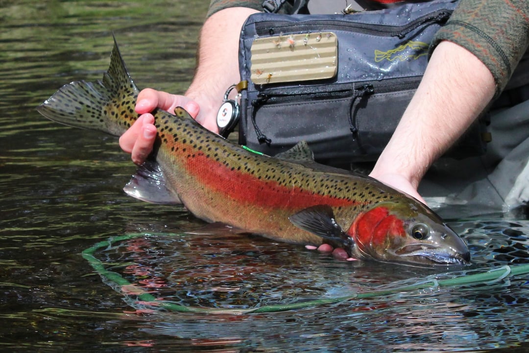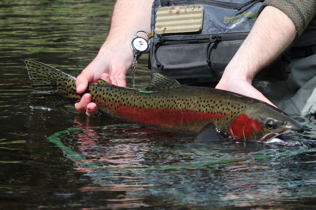If this fish wasn't tagged by two ODFW offices I would have thought it was a huge resident. Obviously wasn't fishing for steelhead, caught it out of a very deep hole. According to the biologists there's only ~100 of these fish in the entire river.