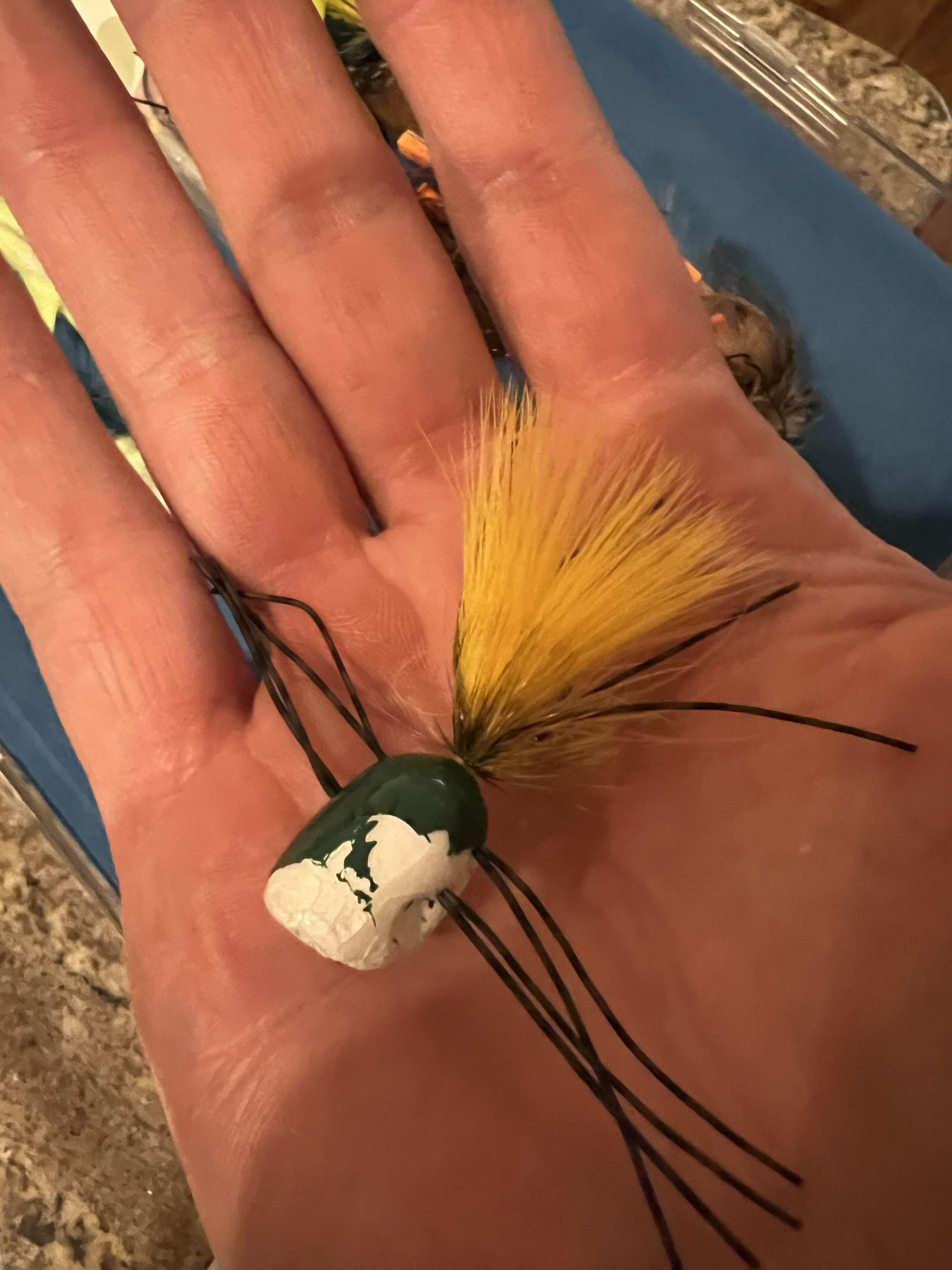 Got a new 6wt today and took it out to practice casting with this brand new popper. As you can see, it did not go very well. Smacked it against a telephone pole, moved, smacked it against a dock, moved, and then smoked a rock a few casts later. I've named this guy Scott Sterling.