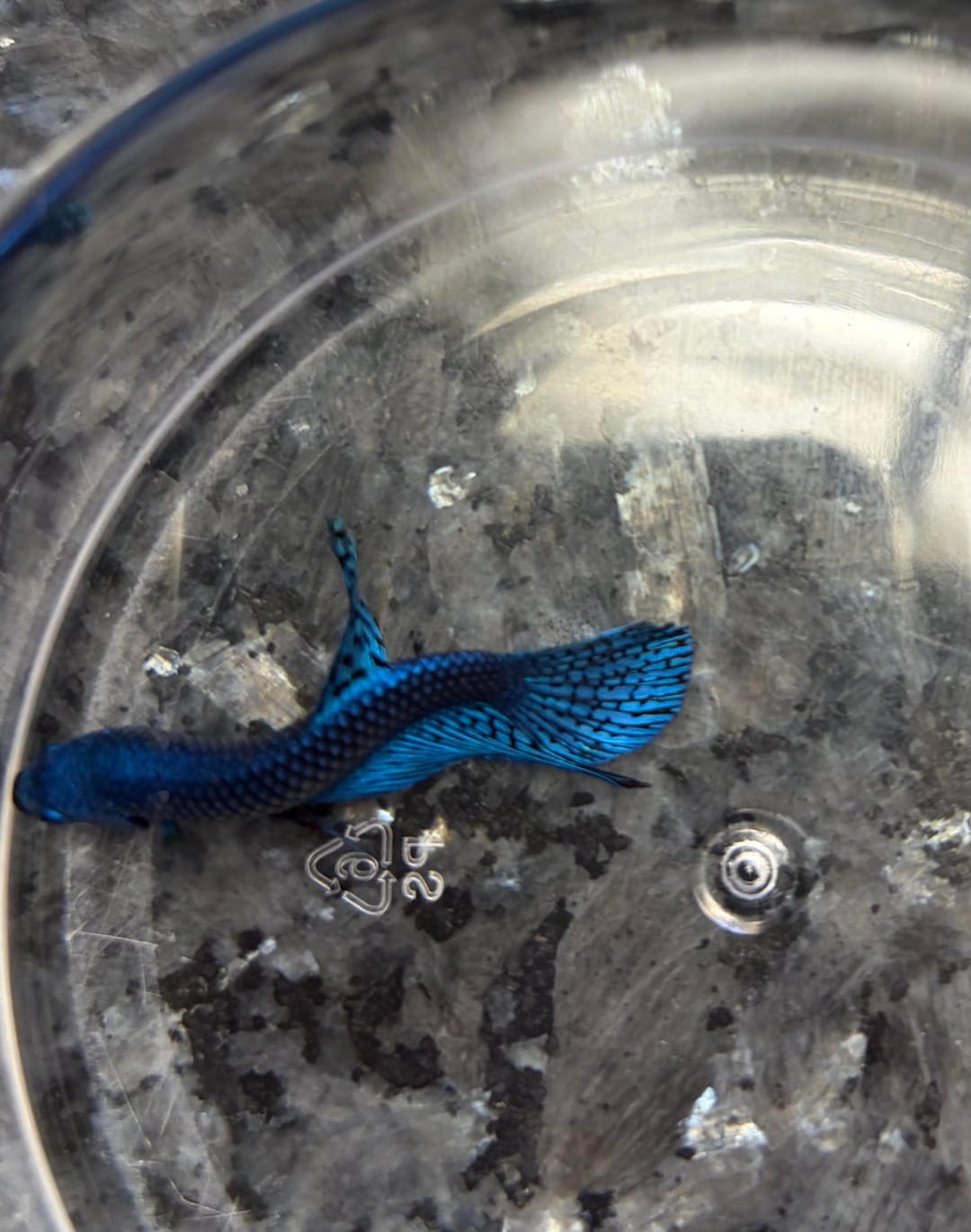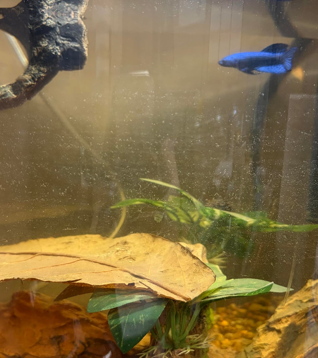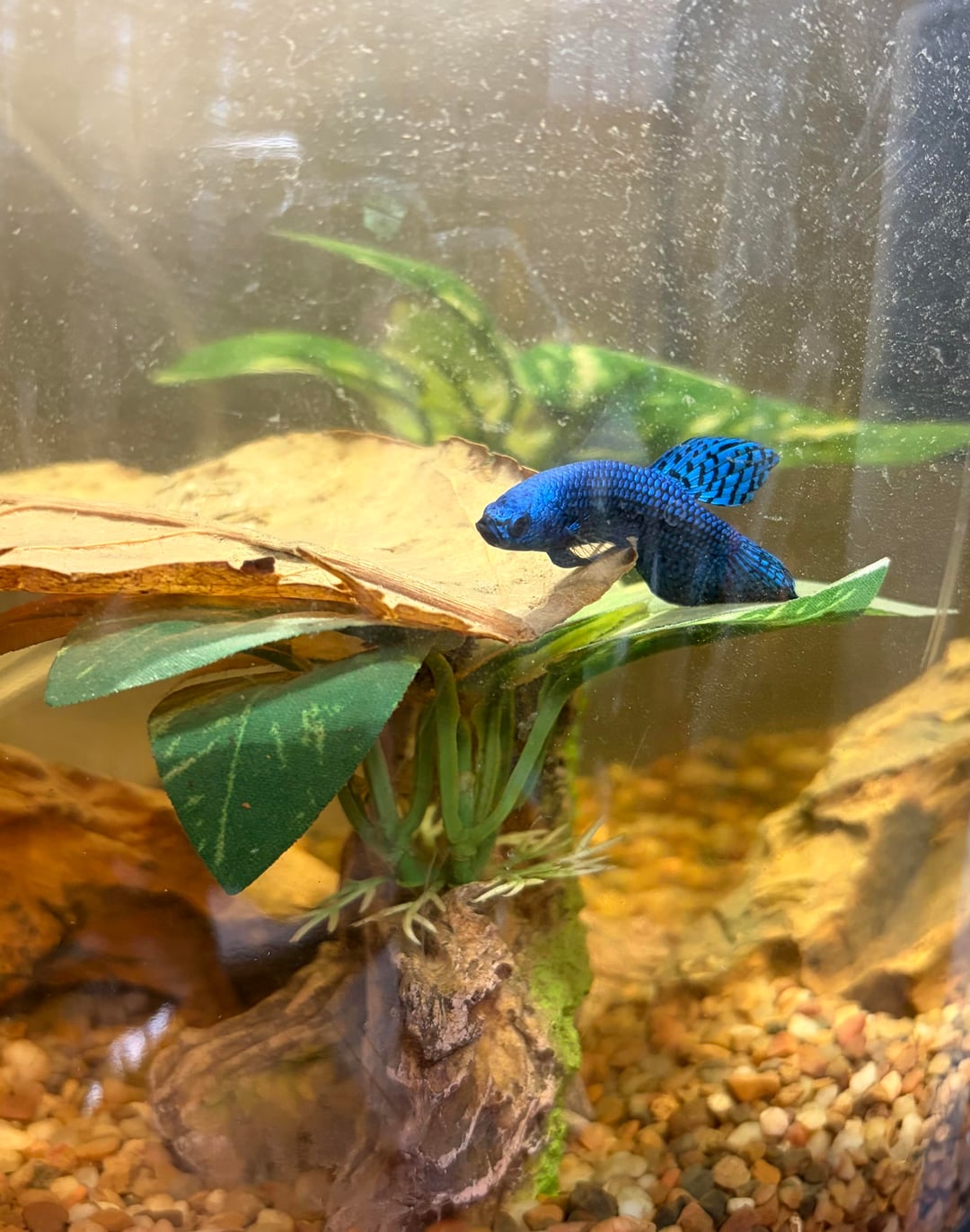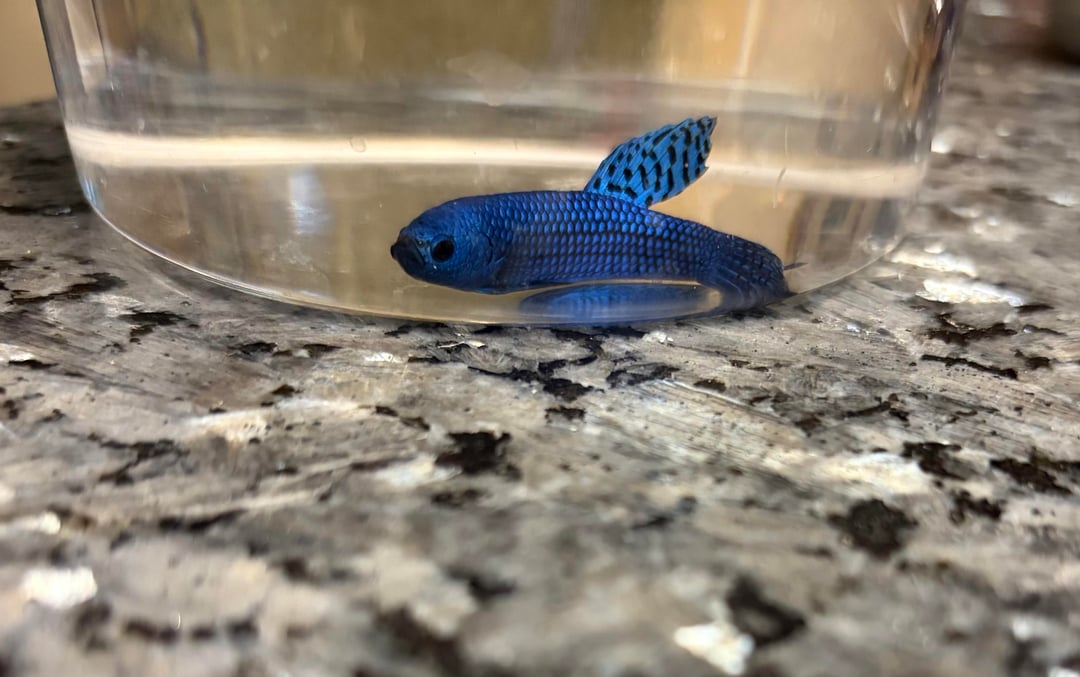 He is currently in the 3.5 hospital tank I usually keep drained and offline. I knew (and still know) I was taking a risk putting him in a non-cycled tank, but I figured anything had to be better than dying in that little cup. I know we aren’t out of the danger zone which is why I’m still holding my breath, but I’ve already seen a lot of improvement in his swimming and his fins seem to be less clamped from stress, plus he’s eating so I will take that as a positive.