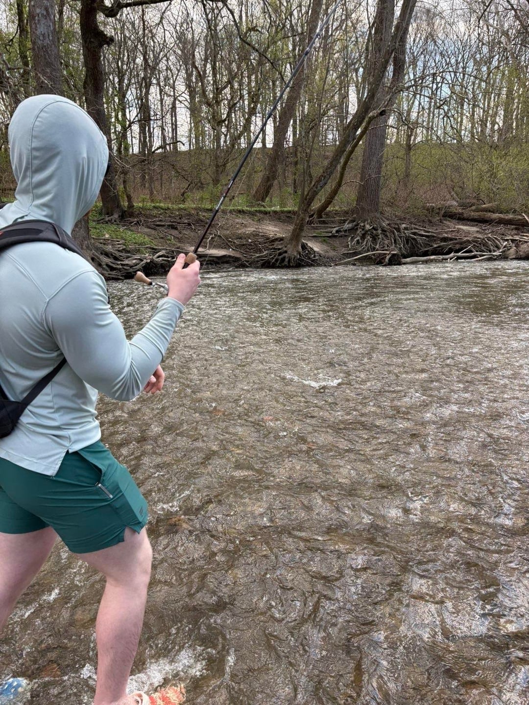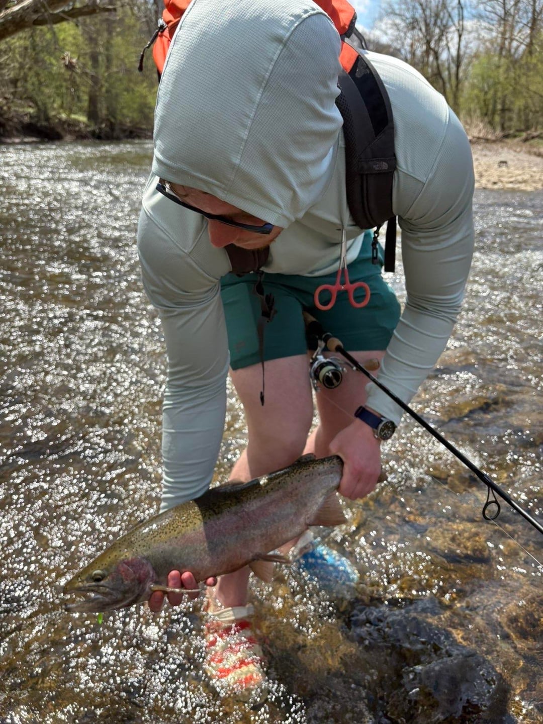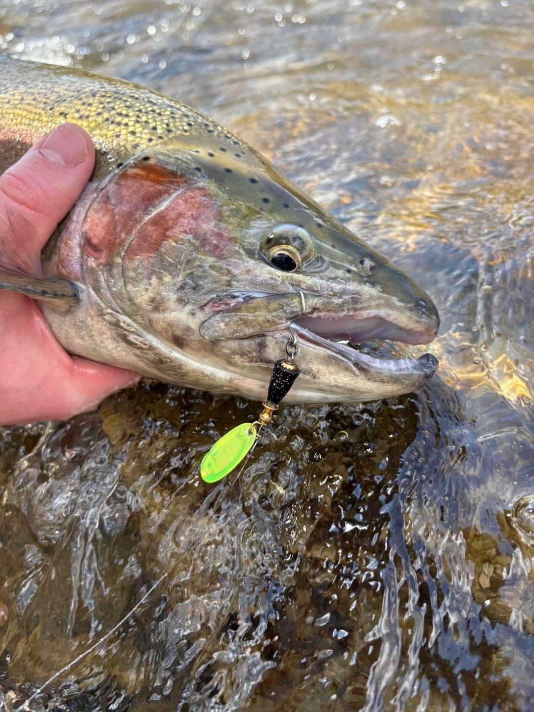 Blue foxes never fail me, my go to spinner by a long shot for trout and coho in particular. Beautiful bow as well!What’s that hook you’ve got on there, looks like an inline hook of some variety. I generally just use the single hooks that come in the packaging, one of the many reasons I love these spinners is that they come with an open eye single hook to replace the treble.