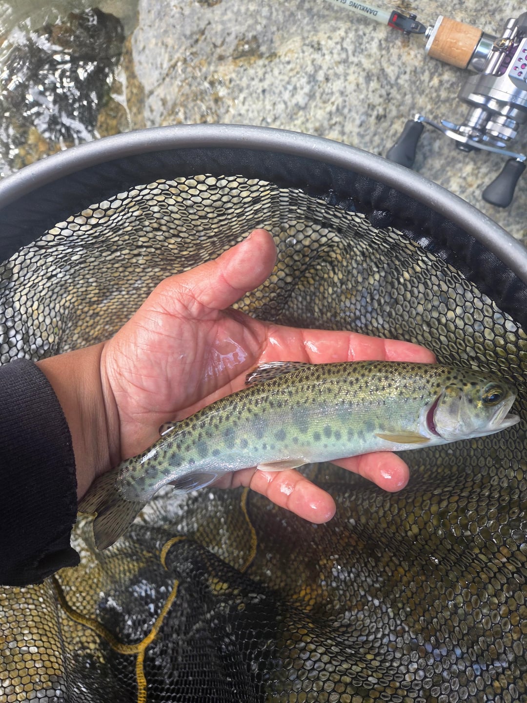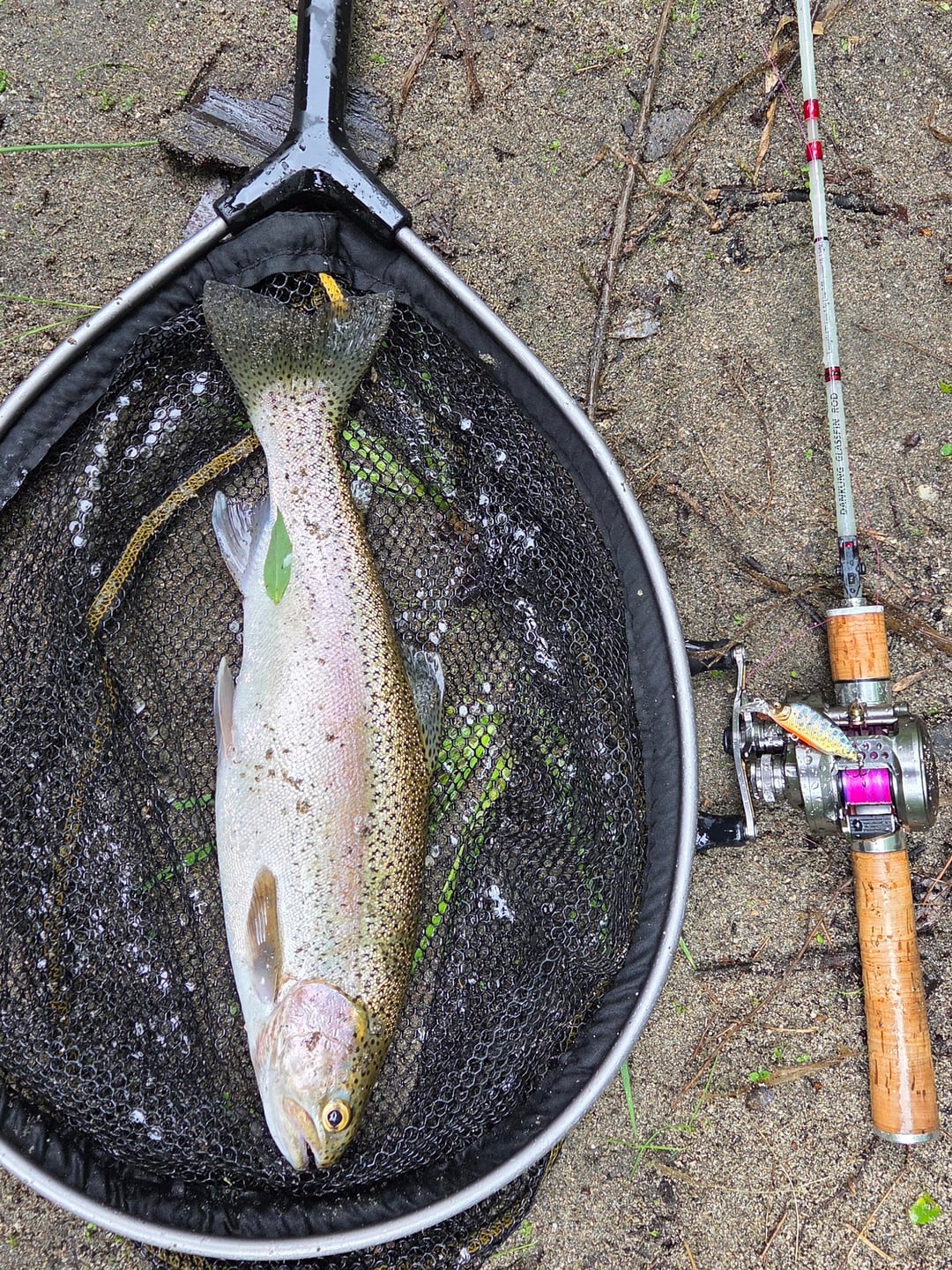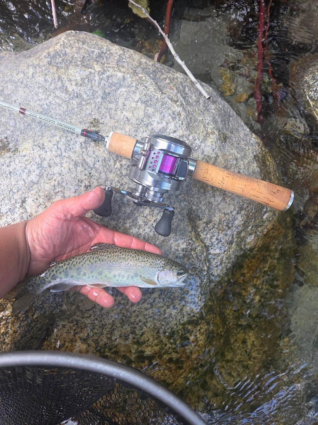 Great day at the creek today, got me some catches and one of them has become my new PB wild rainbow, about 15 inches maybe a lil more or less lol. smashed the bat a fry 44.