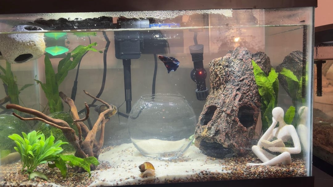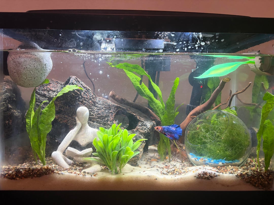 i am currently growing more plants but i upgraded my tank from a 5 gallon to a 10 gallon and i need some suggestions on what i need to add to my tank or any decoration ideas. (an affordable price is preferred.) i have a betta and 2 mystery snails and they all we’re struggling at the pet store so i’m trying to give them the best life.