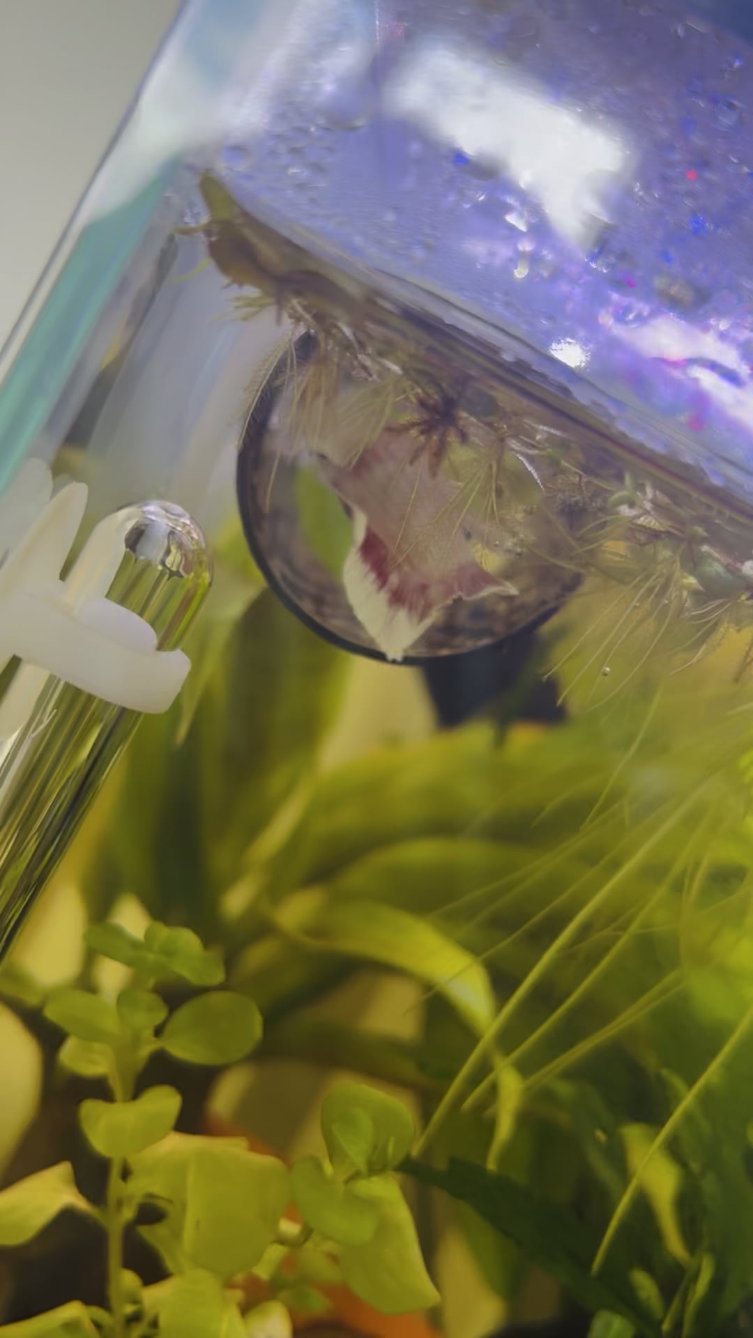 My first betta as an adult! I set a tank up 2 months ago and let it cycle, waiting to come across a betta that pulled on my heart strings… and I finally found one! I’m very much in the “scared mum” phase after bringing him home on Saturday because I want everything to be perfect for him, but he seems to be settling in well. He’s a very calm and curious boy for the most part, and finds it particularly fun to swim through the almond leaves on the tank floor or unfortunately, chase the Amano shrimp around… or at least what’s left of them😅