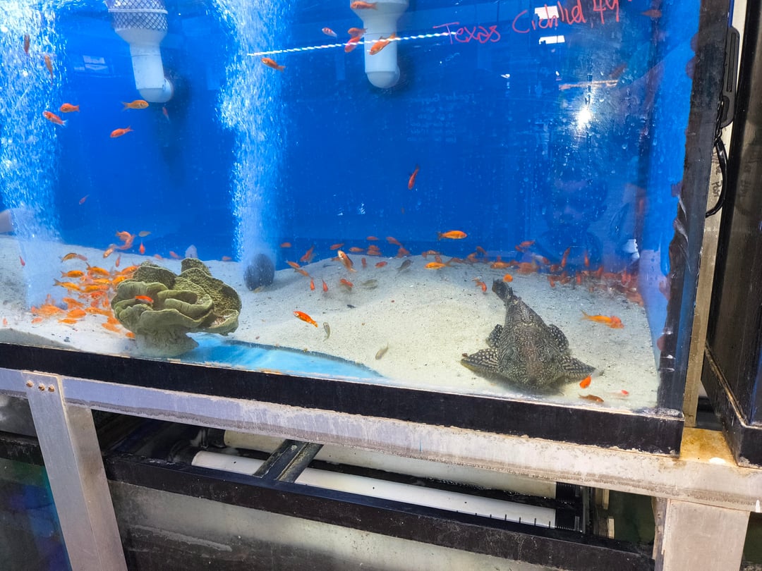 The workers said he won't last long because people are always looking for big plecos.
