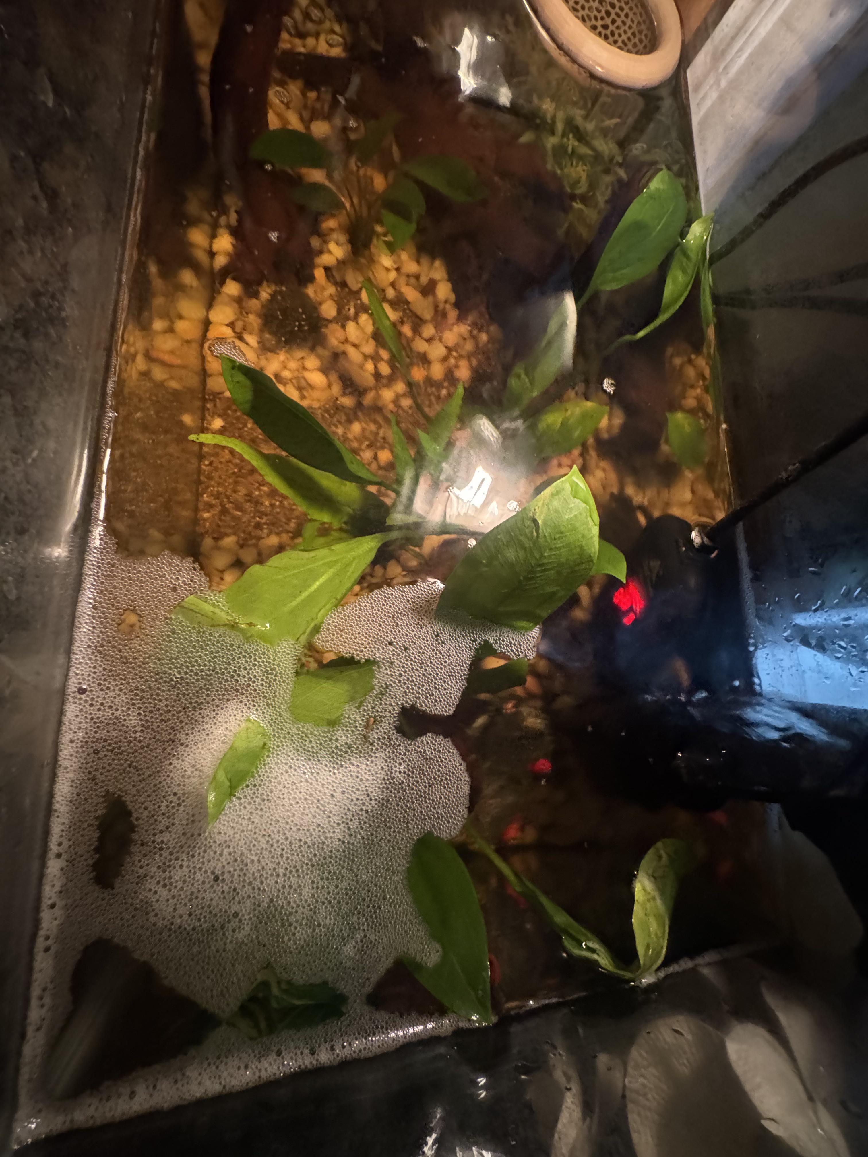 Uhh a bubble nest. Means the fish is sexualy mature. No water movement made it better for nests.
