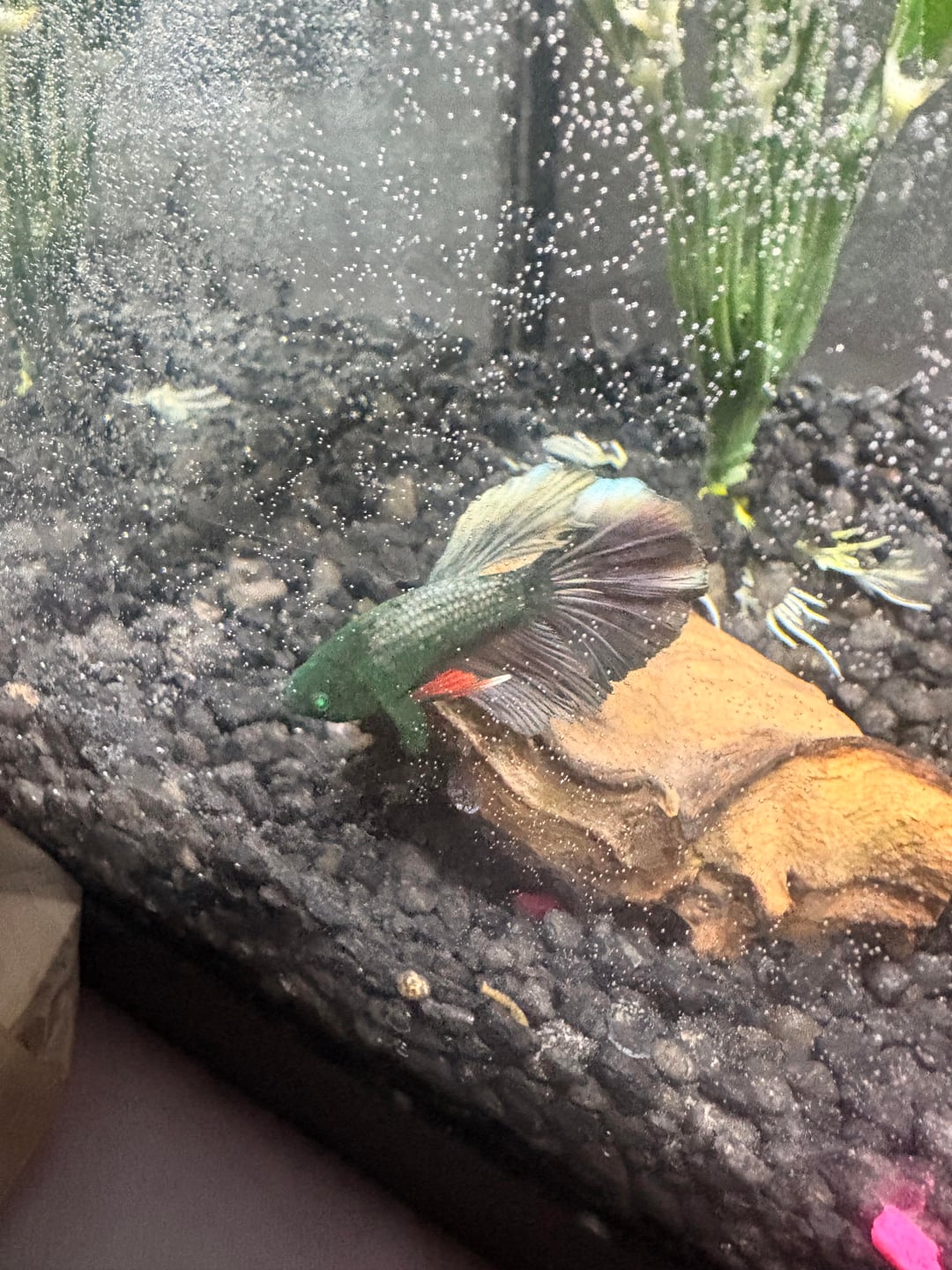 I have had multiple betta fish colors and breeds, but i found this guy at petco today looking very black with a hint of green. Got him home into a 10 gal with some food and now he looks like this. Does anyone know what breed it is? It was labeled as Rose petal