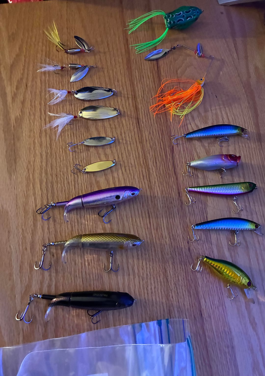 Might add some different types of soft plastics craws/ trick worms, but honestly the only thing I see missing is at least a chatter bait of some sort.