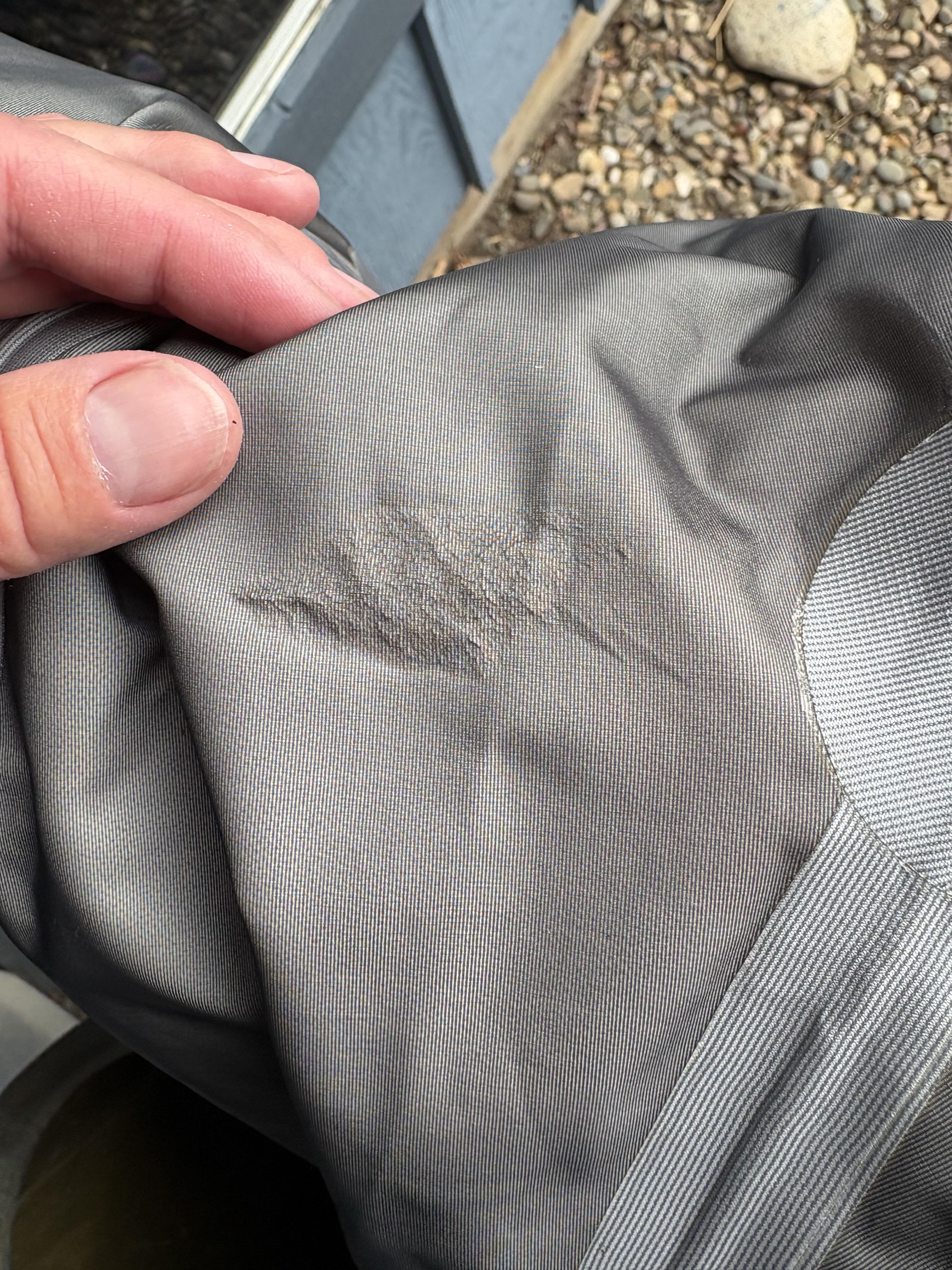 I’m very rough on my waders (lots of blue lining, scrambling, pushing through brush when necessary, etc) and took a tumble yesterday. Pulled them instead out to make sure everything was absolutely dry and saw this in a few spots. Is it water getting trapped between outer fabric and inner membrane? I didn’t see an obvious tear on the other side, but could be a pinhole.