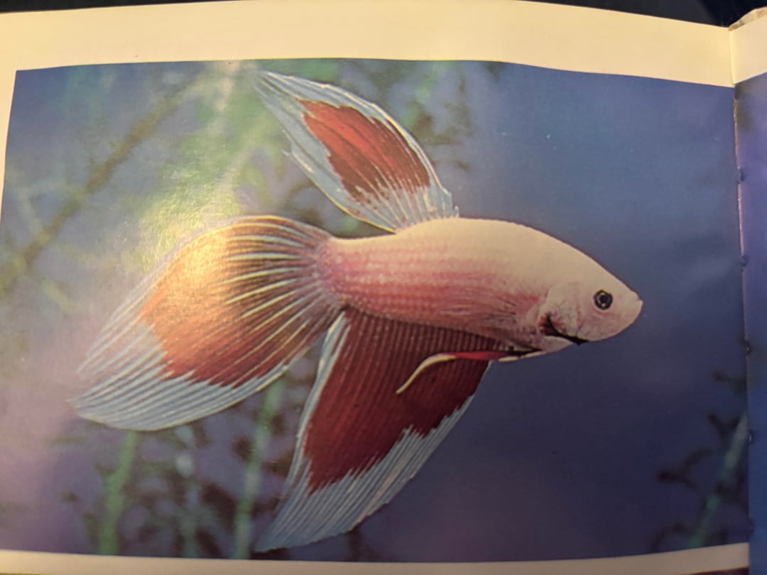 First pic from a 1995 book on Betta husbandry. Things have changed massively since then, and I was reflecting on a tiny, sickly female I purchased around 1998 that was this color because she was the only one of that color I could find. She didn’t live long.