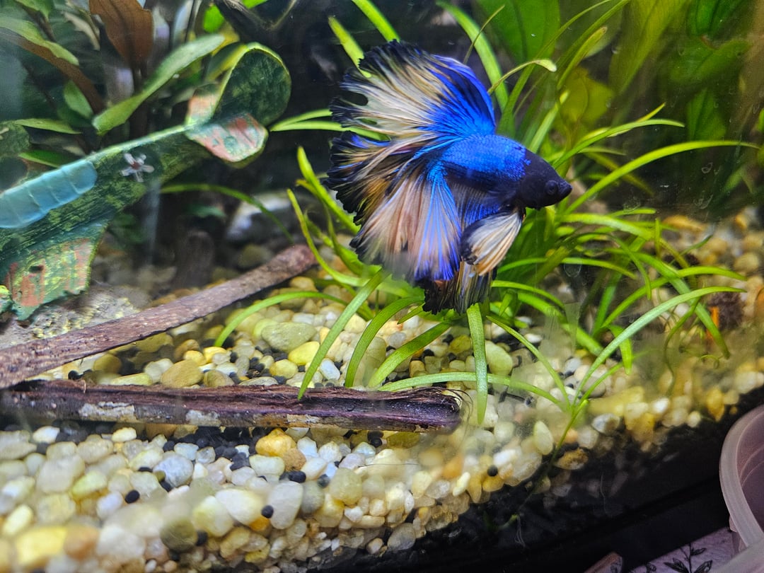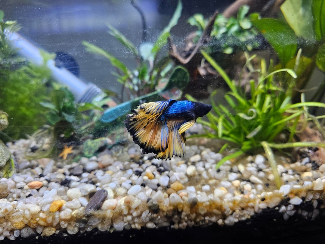 I've had my sweet Magellan for a month now and he's really starting to glow! He's a bit underweight still but slowly getting there. There's 3 pregnant shrimp in my tank so I don't want to increase feedings. Magellan chills with the adult shrimp but he'll probably eat the babies… š