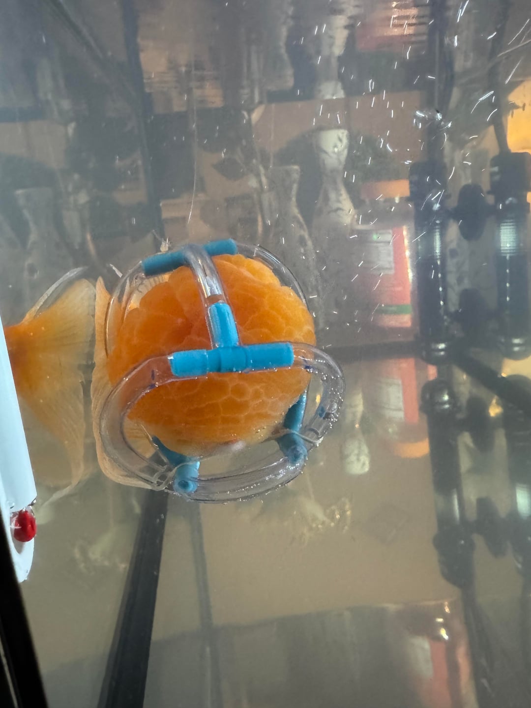 If I was a fish, had my swim bladder punctured by a vet (why was it getting surgery anyway), and I had to float around with this contraption on my head, I’d rather die