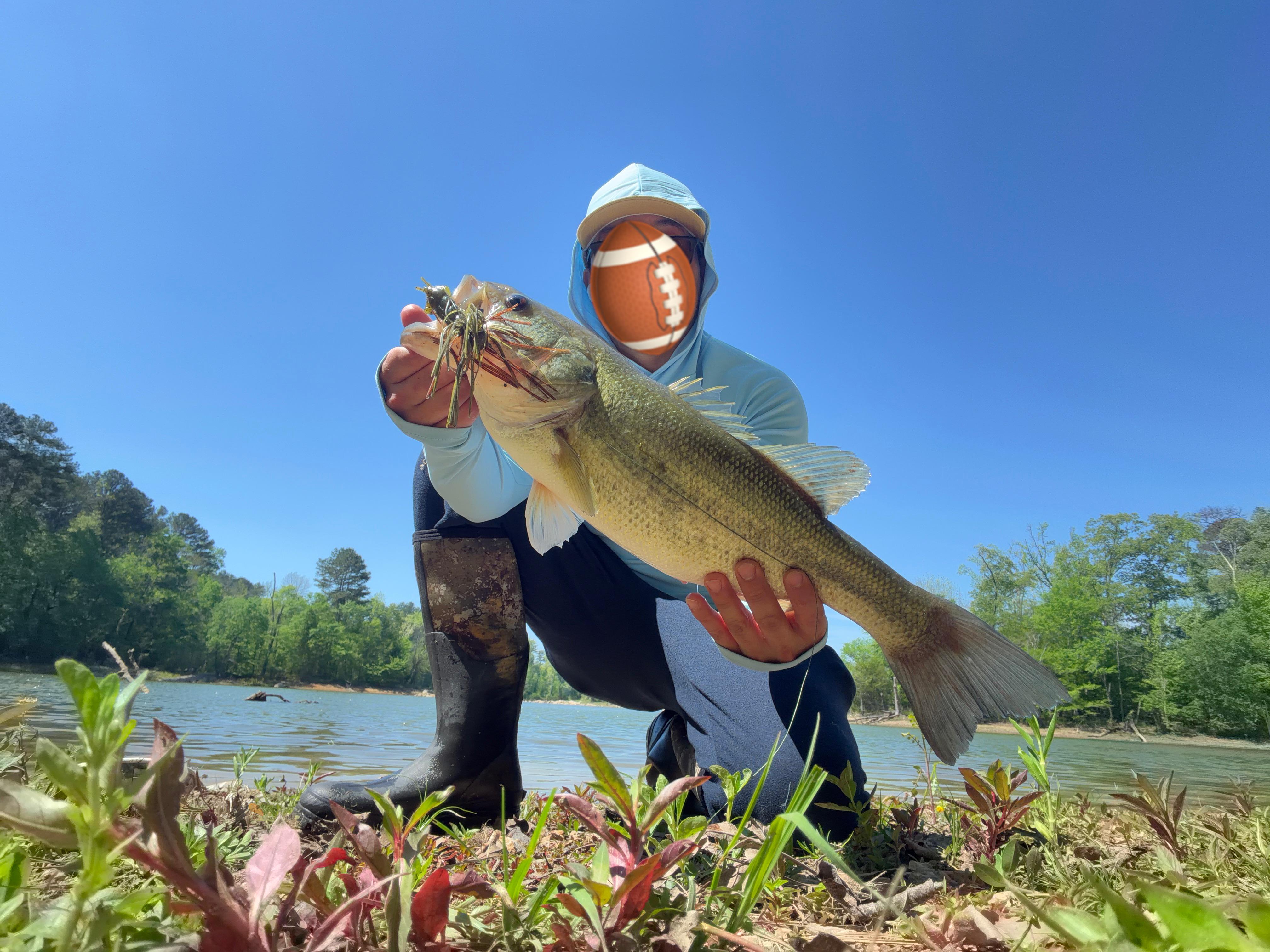 Caught this one with a Strike King 3/8 Ounce football jig on like 12" of water super shallow