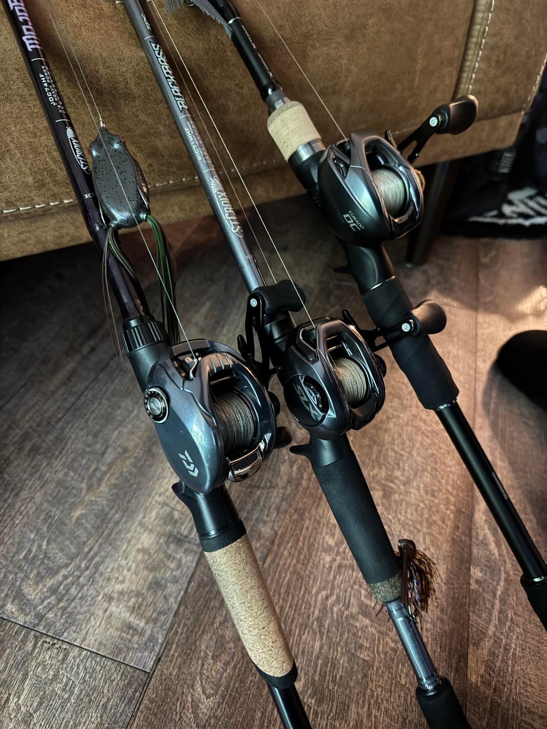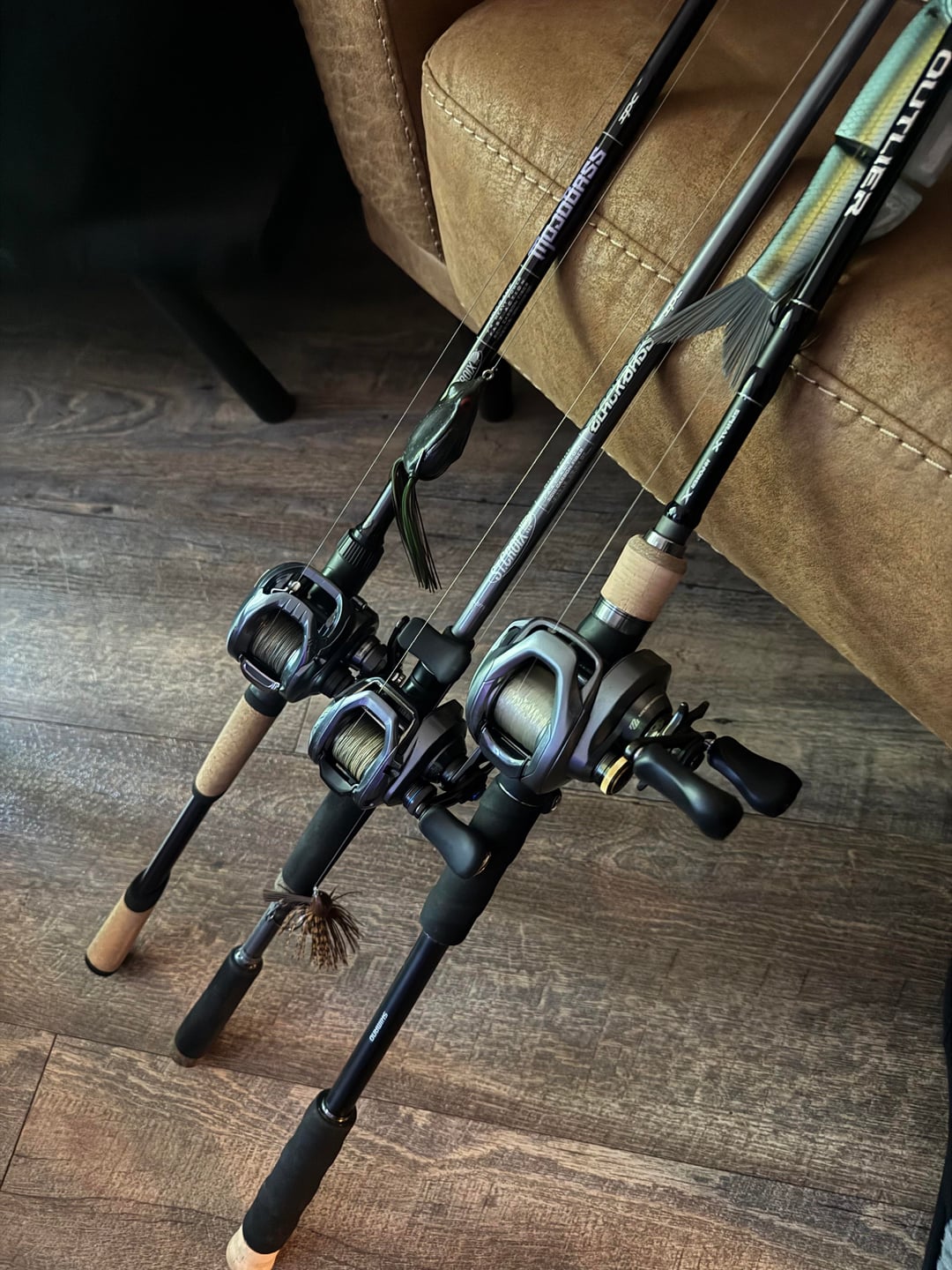 These are my 3 main bass setups. Ironically, my PB is on the smallest rod. Need to add a finesse spinning rod to this collection. Recommendations? I have 4 other spinning rod setups I use in the salt down in FL.