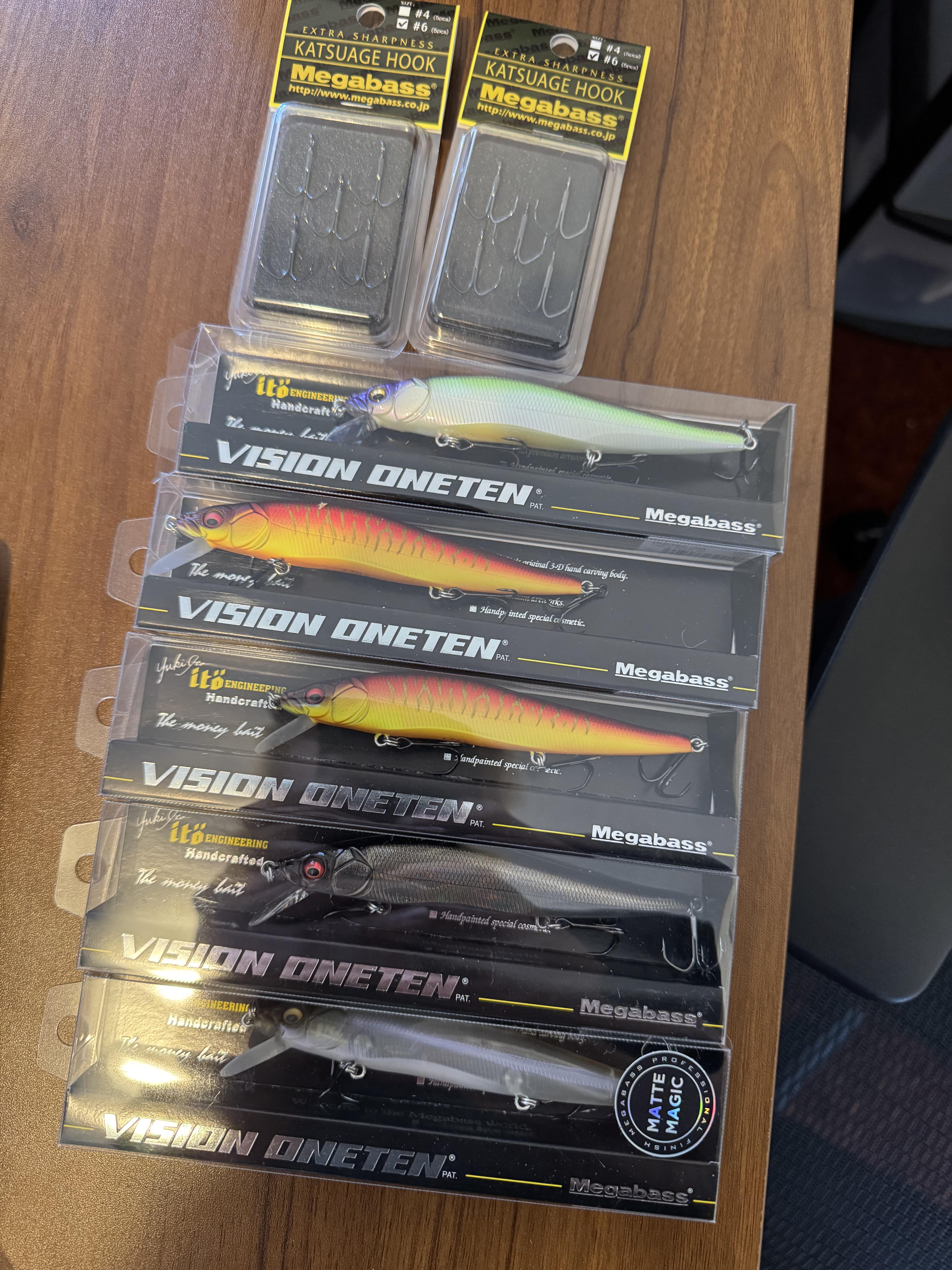 This Aka Tora was the only reddish 110 in stock at the hookup, tackle warehouse also out of spawn killer. Way she goes! Deadly Black Shad gets smoked at my local lake in May, needed a backup of that and Mat.