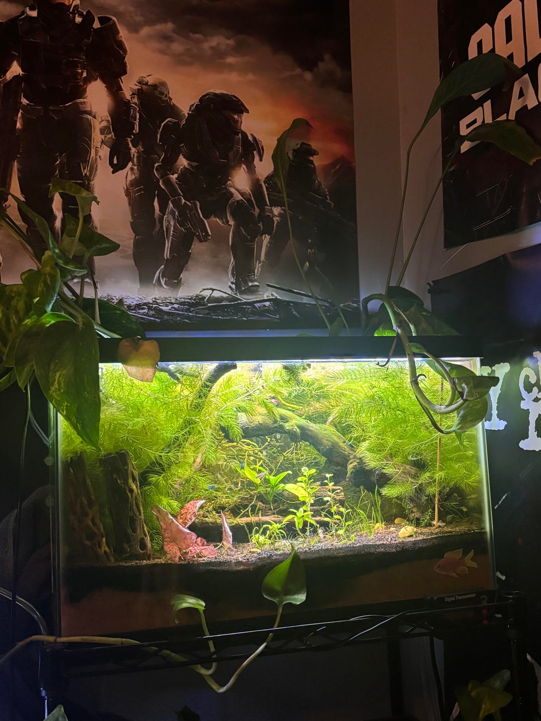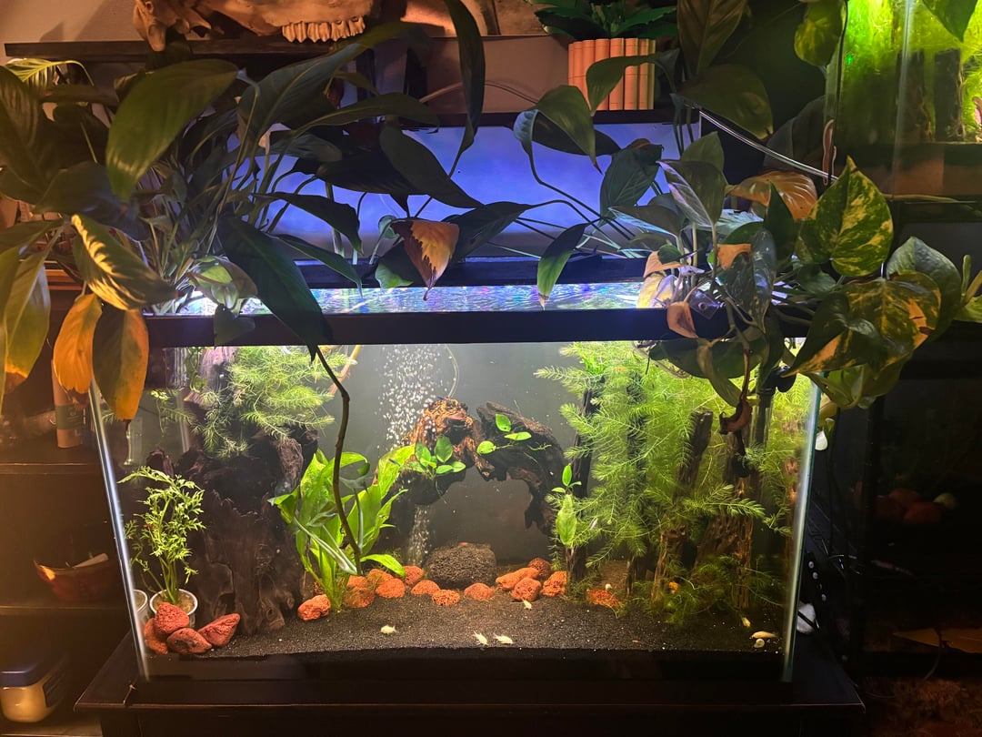 Certified_Cichlid on April 17, 2026 1:11 am Your tank has full spectrum lighting. The land plants solely have access to the yellow room light.