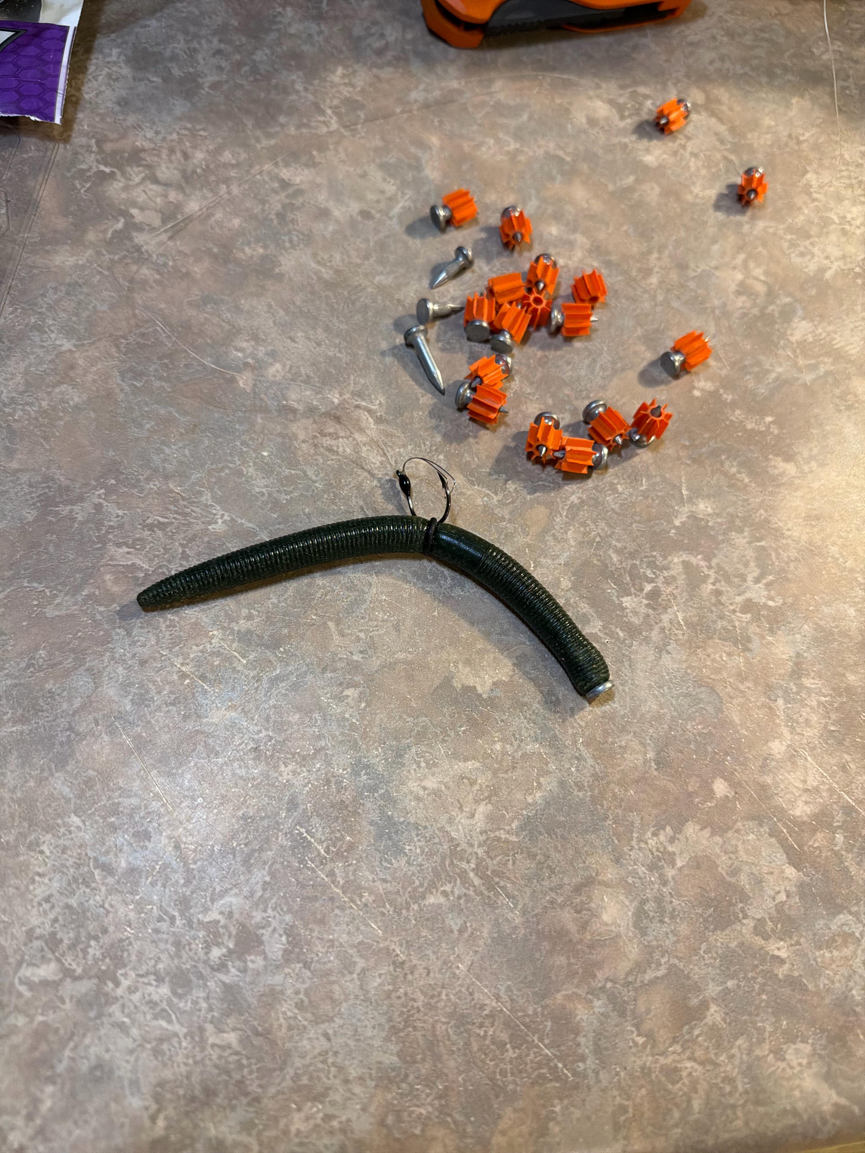 Instead of buying nail weights at the tackle store , if you work in construction or have access to these type of nails (powder actuated fasteners) many are close to 1/16 oz All I do is heat them with a lighter and stick them into the soft plastic and it won’t come off easily