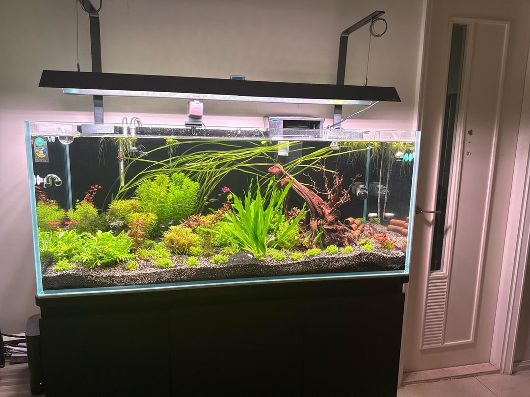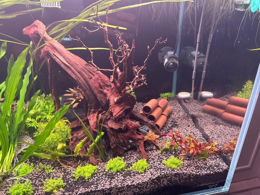 New tank finally up , using old filter plus adding prime daily for fish so there safe for the mean time till plants fully settle in