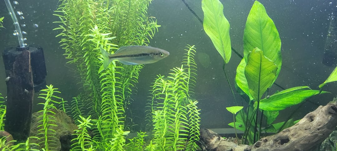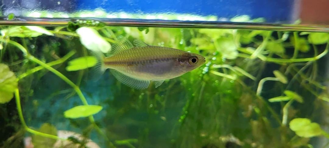 I set up my tank back in February 2025. In the first batch of plants, I ended up with a little hitchhiker fish egg. It hatched and she has now grown into a beautiful, lively and happy Wapoga Rainbowfish. I know she is a schooling fish, but I cannot find any other Wapoga Rainbowfish to buy for her. The LFS where I bought the plants have not restocked their supply in many months, and I called the other LFS (which is a pretty major operation), and they checked with their suppliers who said they couldn't get any either. Websites like Dan's Fish and Aquatic Arts are all out of stock. I love my little girl (who we call Baby) and she does seem perfectly happy on her own. She eats well and is very active and friendly. But everything I've read says she needs to be with a school of her own kind. I wouldn't be comfortable giving her back to the LFS because their fish don't always look well cared for. At this point, should I start looking for other types of Rainbowfish to be her companions?