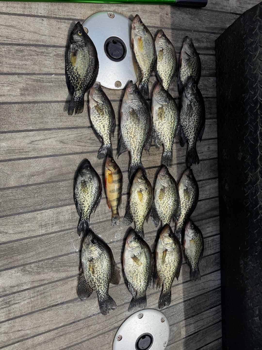 Hit Chickahominy Lake recently and the multi-species action is peaking with water temps in the mid-70s. We found a great run of 11-14" crappie tight to the weed edges.