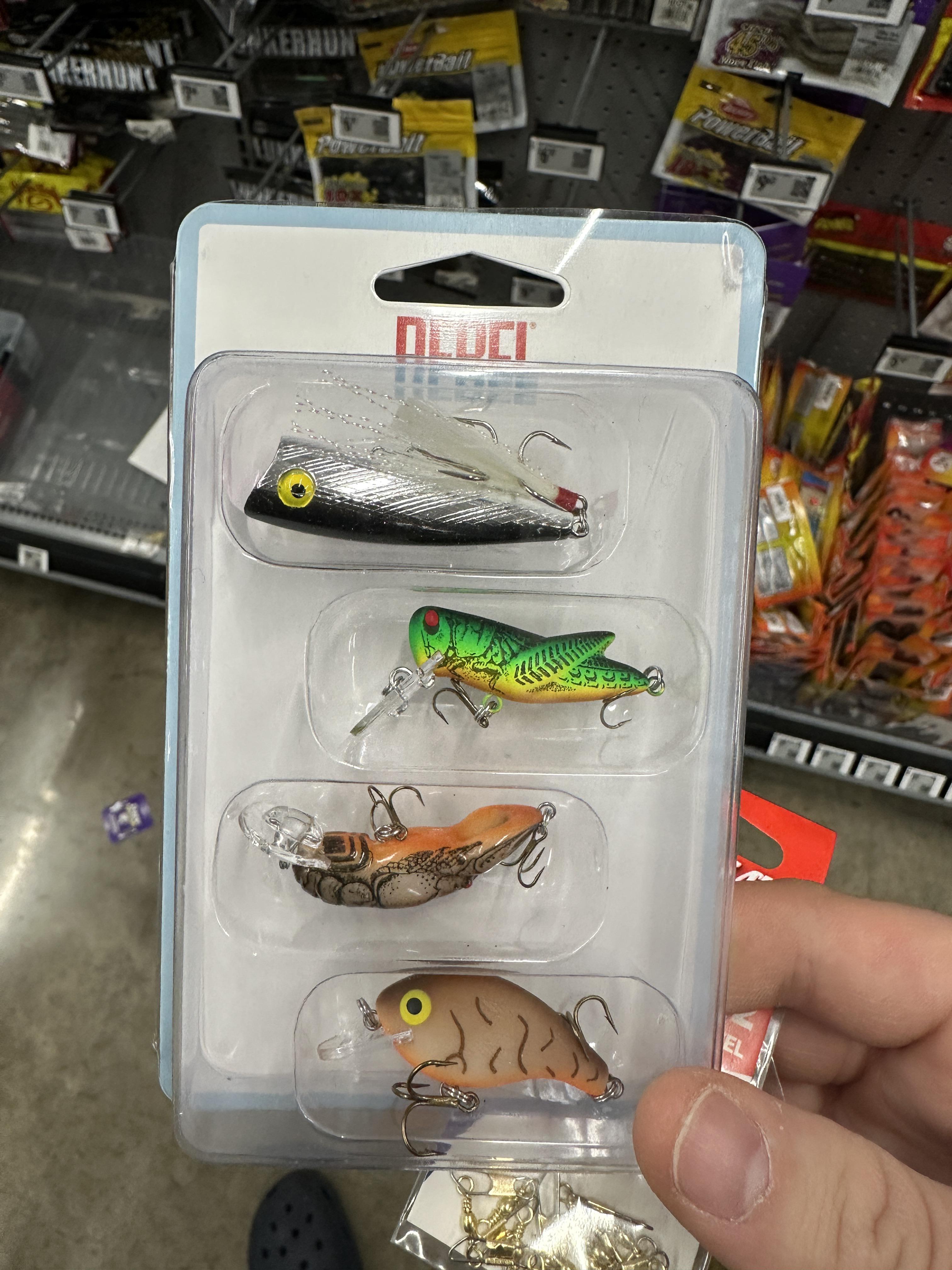 11. I have caught countless fish on that top popper. Never had any luck with the grasshopper or crayfish.