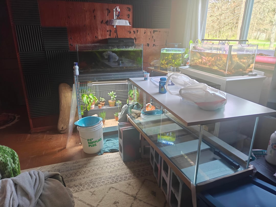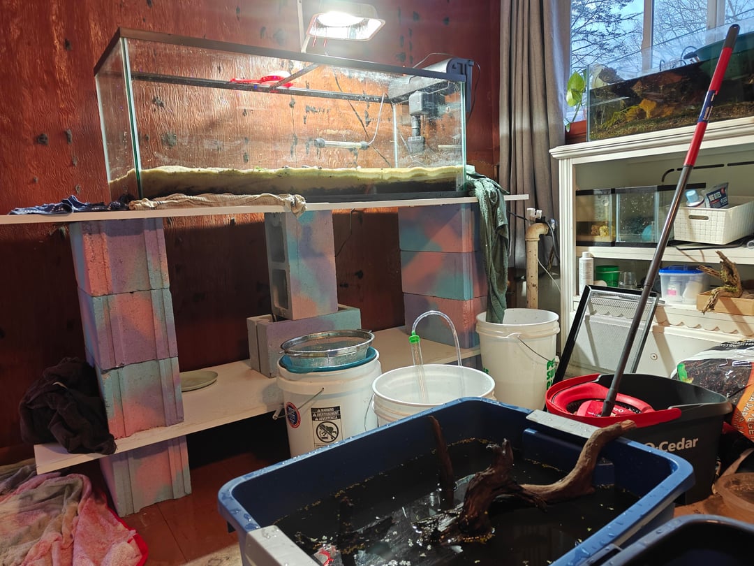 At least I was standing there admiring our full days hard work when the bottom panel cracked on the new 60 gallon Posted by chaoticgiggles