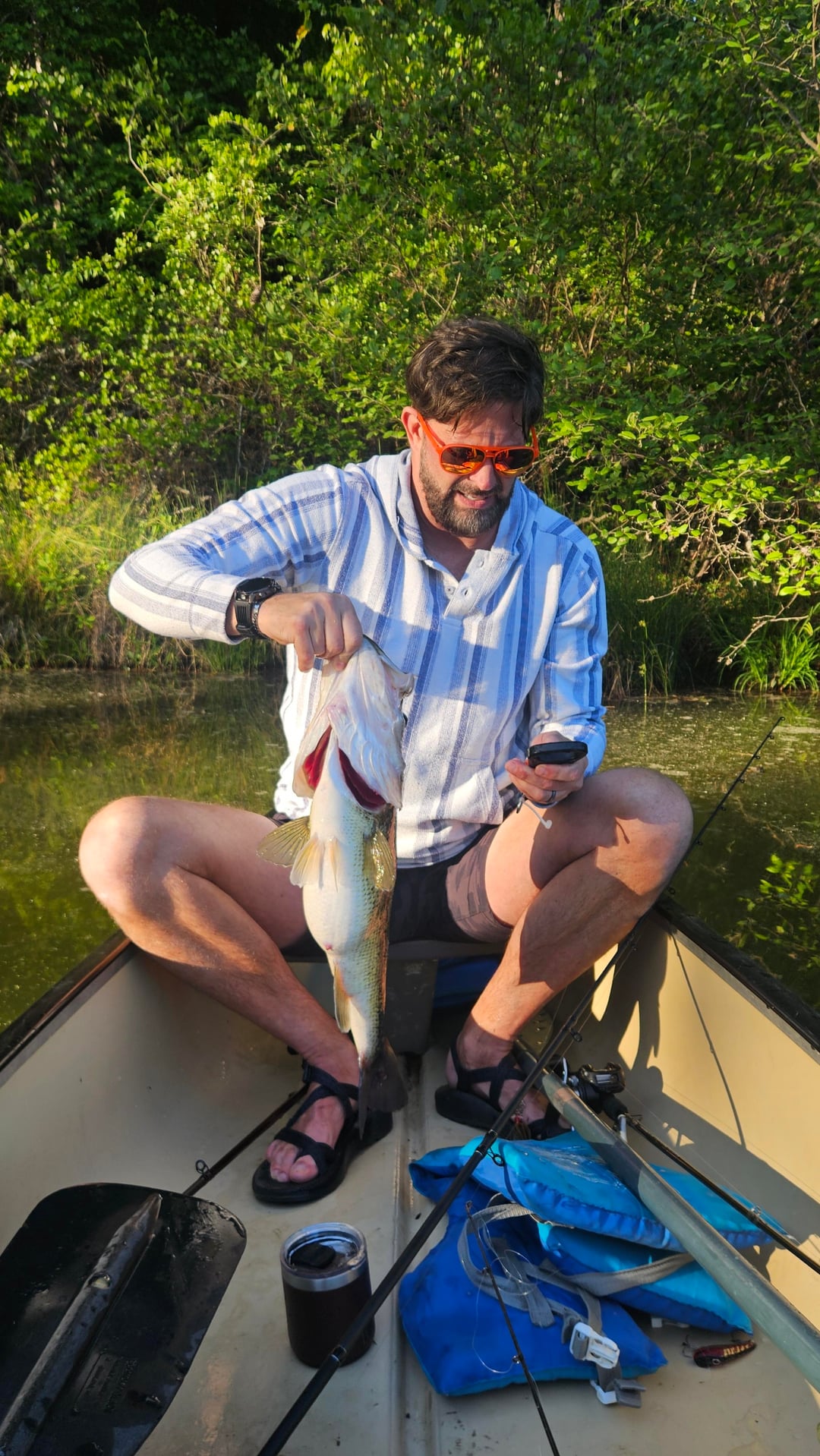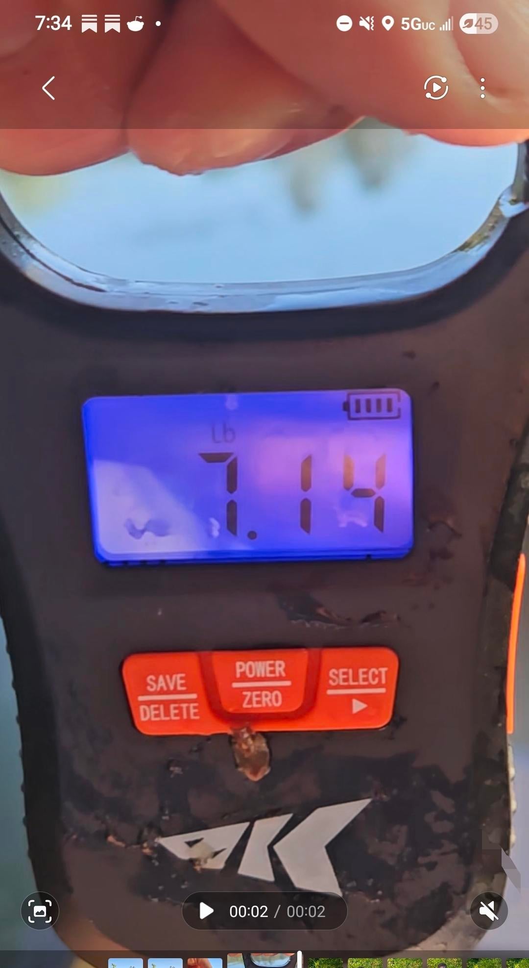 Been fishing for 50 years, and never broken 7lbs. So many 6.9's 5..9's, 6.8's, 6.10's, I was a little scared to put her on the scale. I had just caught a 3lber and this gal hit way different. Bluegill chatterbait. Sorry for crappy scale pic. My son was on the other side of the canoe. Last is the 3lber. CHEERS!!!