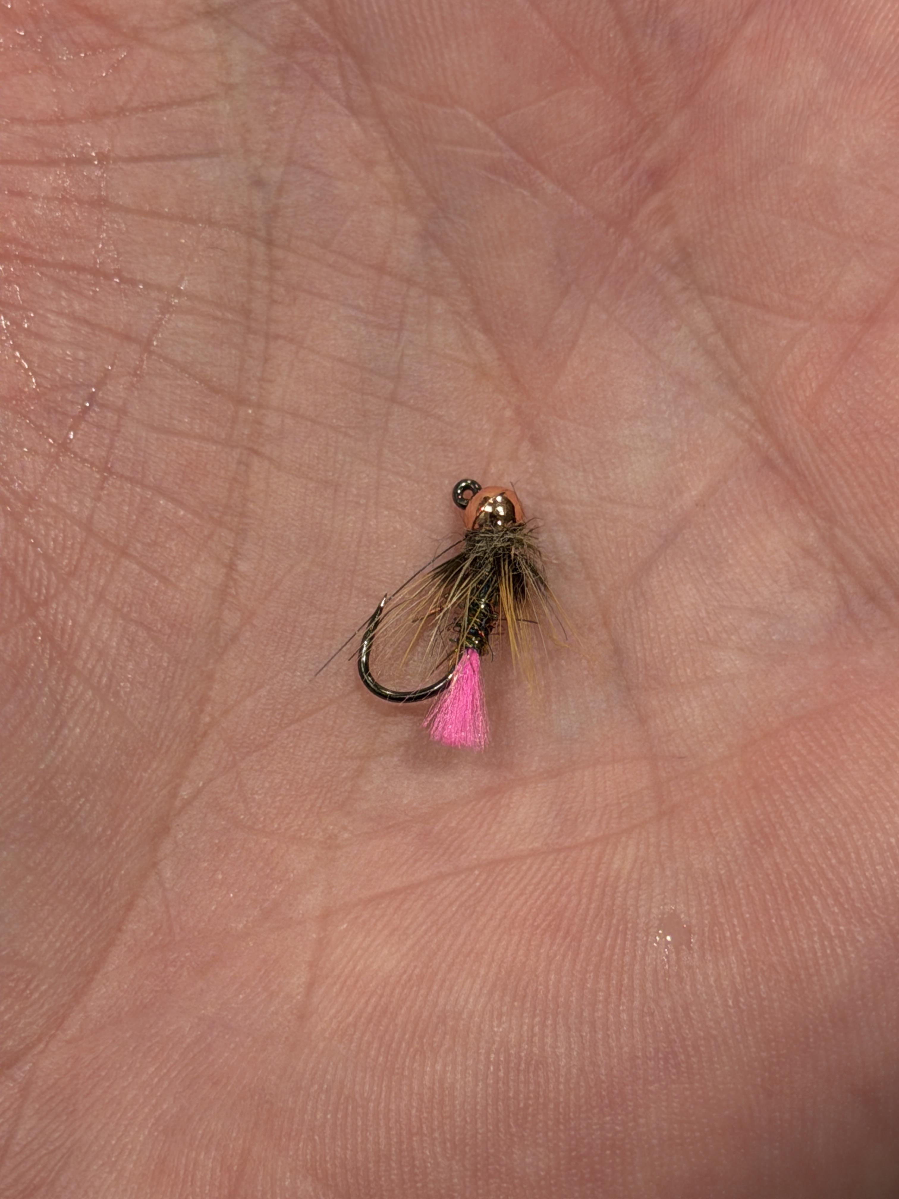 When I first started it was a prince nymph. Now it’s this bad boy. I always try something other than this when I first get out but if I’m not having luck, I always switch to a blowtorch. Usually pink, sometimes bright green. I know it will produce every time.