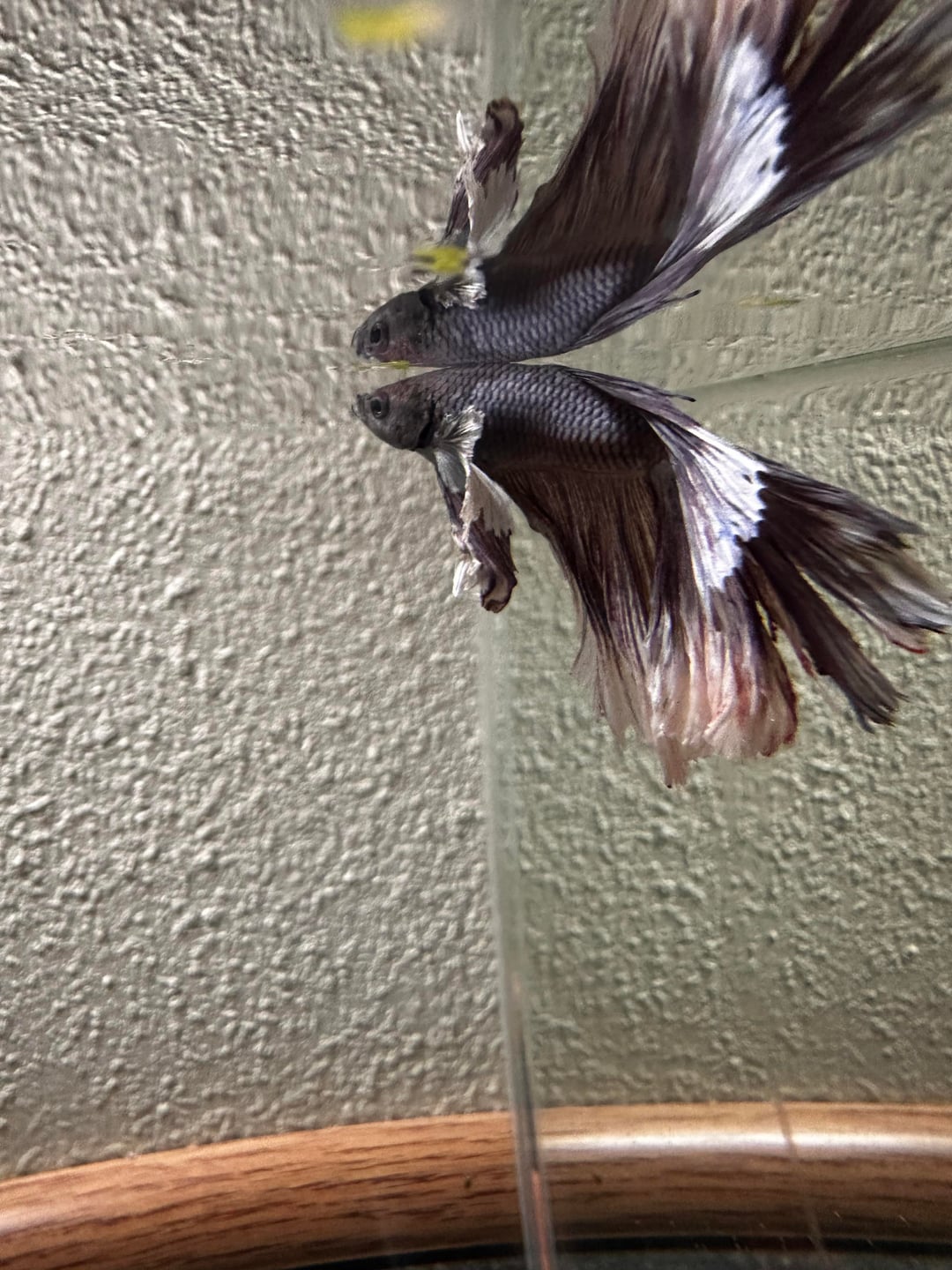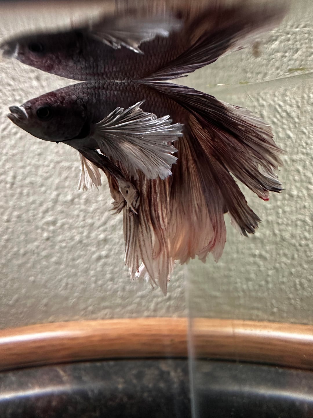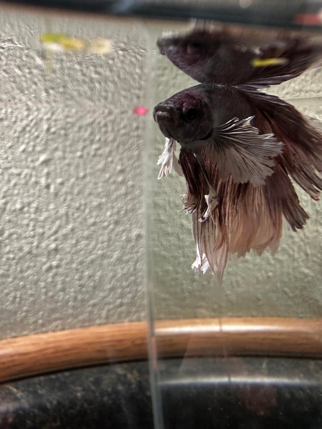 My betta, Millhouse, came down with what looks like fungal fin rot. I moved him into a 5 gallon hospital tank two days ago and started treating with Kanaplex. Today I’m I did a water change and gave him his second dose.