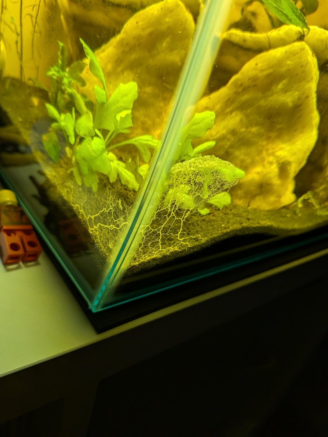 YOOOO slime mold!! Some people specifically try to get this stuff, it’s super cool and completely harmless to your aquarium. You can read up on them!