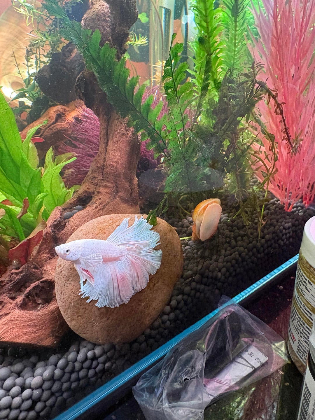 **Also please ignore the crowded silk plants and fake decor, it’s from his old tank and is just in there temporarily for the beneficial bacteria, a tip I learned from you guys! **