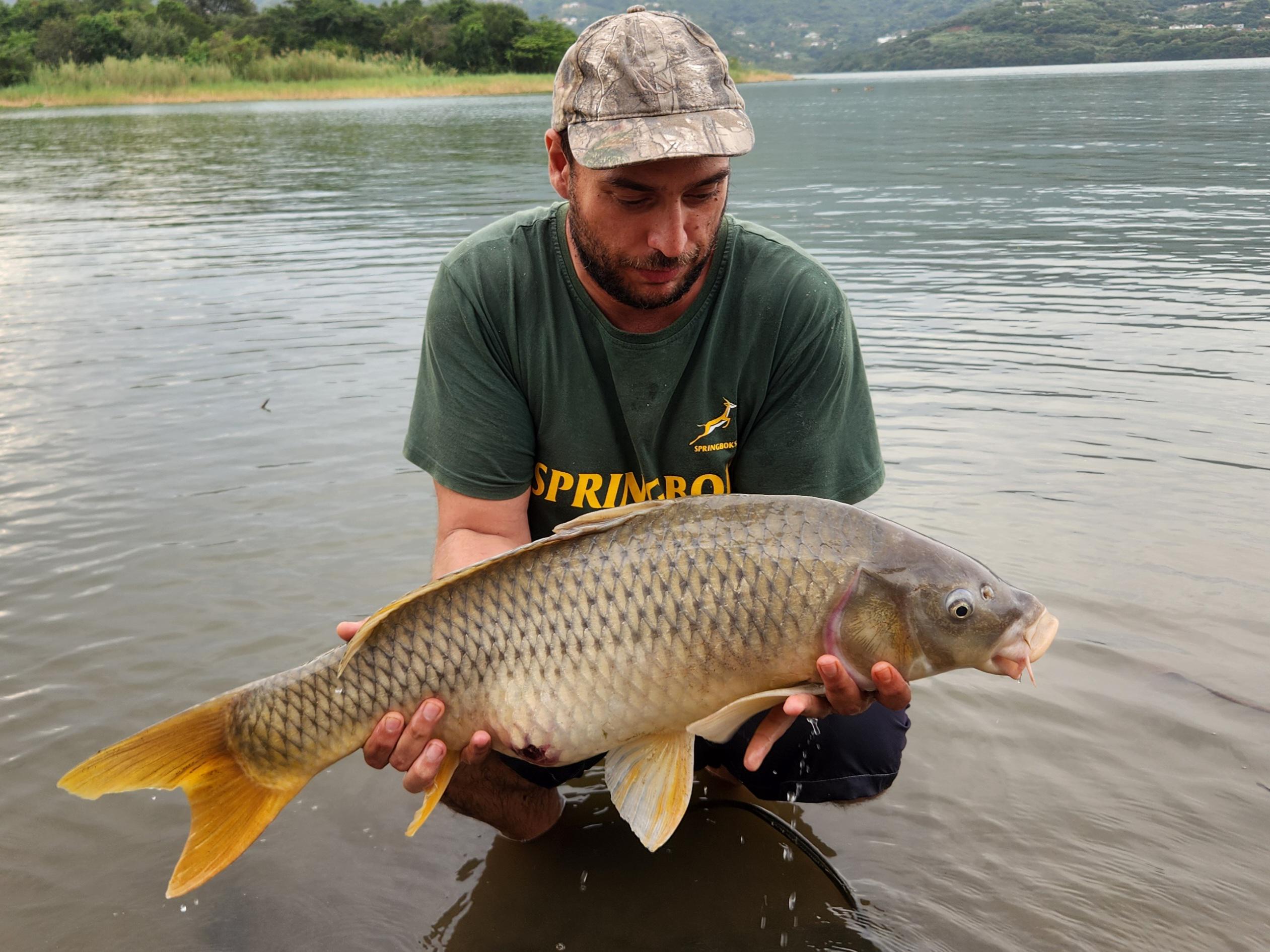 I've been back into carp fishing after only doing saltwater the last 15 years or so. I've been fishing a local park lake but decided to drive up to Inanda, a big dam with some very good carp. Of course I chose a day where there was a weekend bass fishing competition so there were a lot of boats. 20 minutes after the last boat was out the water I got this really nice common carp. I'll definitely take it for a first visit.