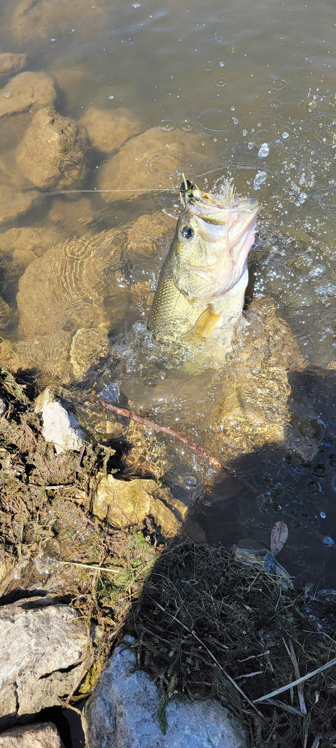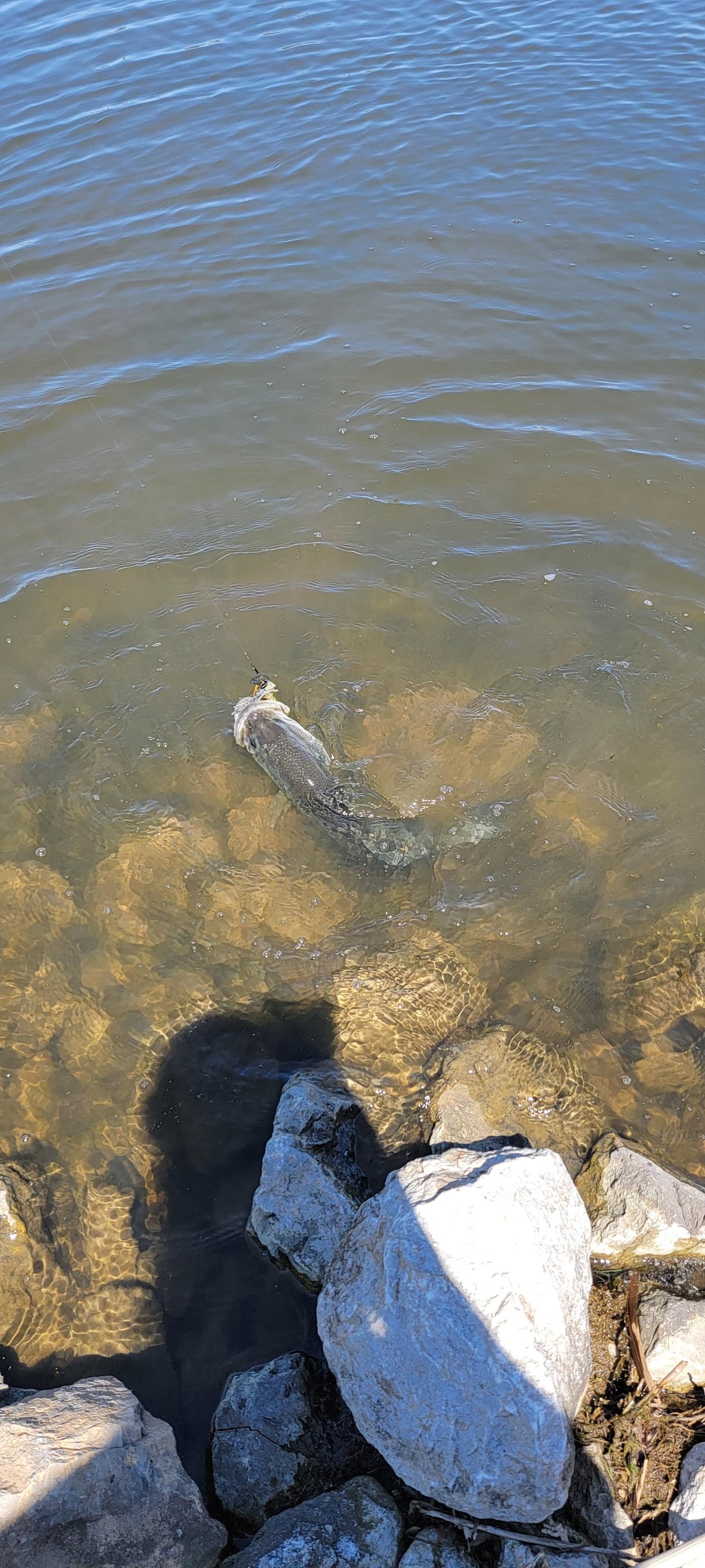 Haven't seen any beds yet, so I assume they're in prespawn looking for a bluegill buffet. Or perhaps they think my jig is a Frankenstein abomination of a bluegill + bass and think "absolutely not".