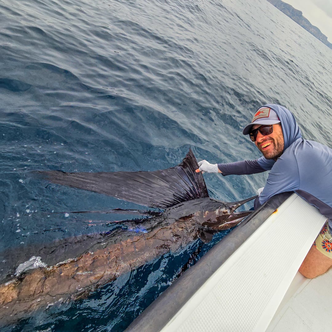 Sailfish: Definitely not "the gentlemanly approach," but a 2.2m fish on the fly is an experience in itself. The take on the popper and the subsequent jumps were pure violence. Equipment: The Sage R8 Core (12wt) paired with the Sage Enforcer reel. Without a high-end drag and plenty of backing, you don't stand a chance. Variety: Alongside Sailfish there were Mahi-mahi (Dorado) and small Tunas to be caught.