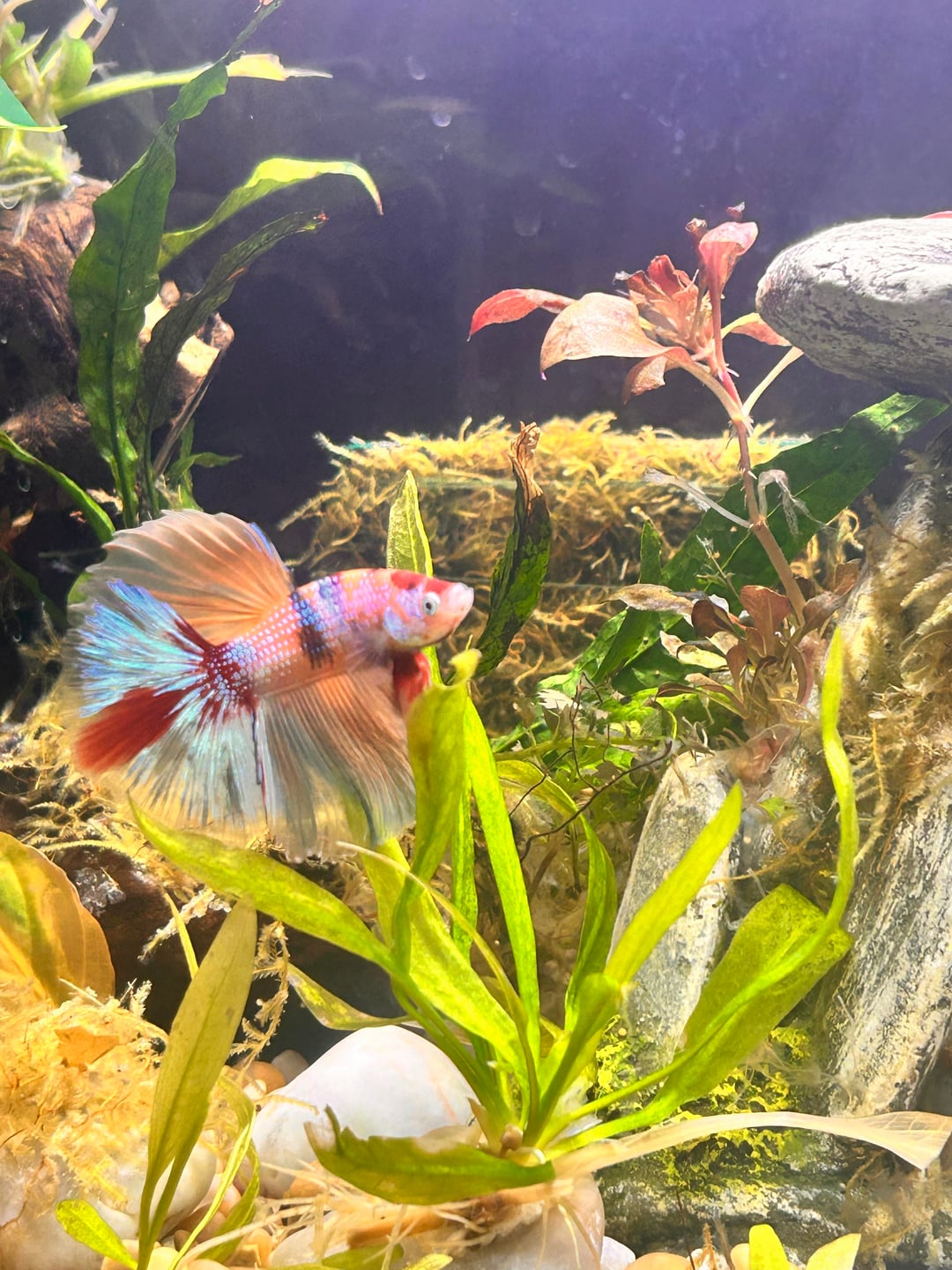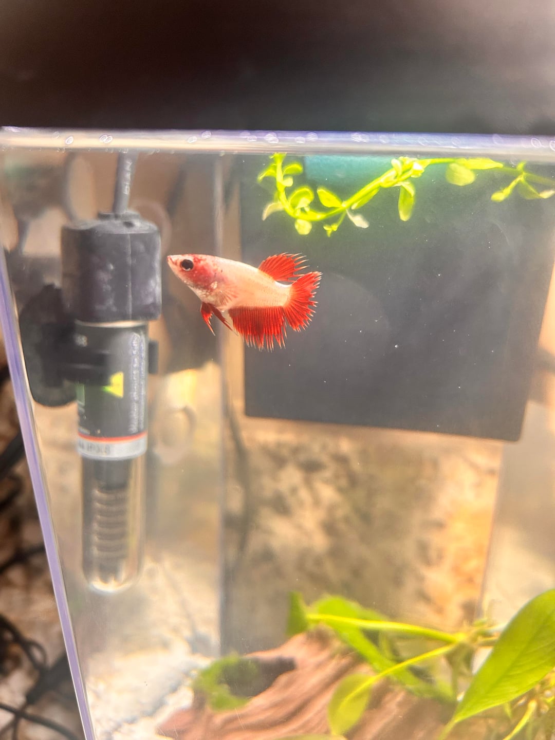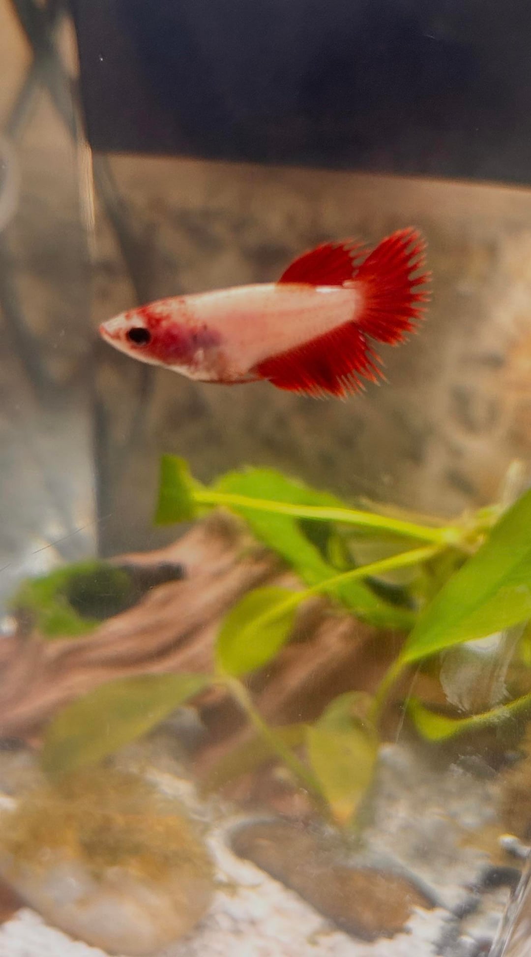 So the first betta is my newest memeber I don’t have a name for him yet. 2nd betta is ghost a rose tail dumbo and he’s beautiful and changes coloring all the time 3rd betta is Penelope she’s my female koi and wow has she changed she looked like a pink little fish stick when I got her. And last but not least is also a newer member she’s so small and came as a little bitty baby crown tail about the size of my thumb nail and no color at all now she’s filling in and becoming more and more red and fat lol 😂. I love my bettas and can’t help but saving them all of them come to me with no color and thin and sad and after two weeks they already look like different fish I love the transformation of bettas from sad and sick to big healthy and full of color and life. I’ll update with newer pictures once my newest male gets all of his colors and is not so clear. Help me name him.