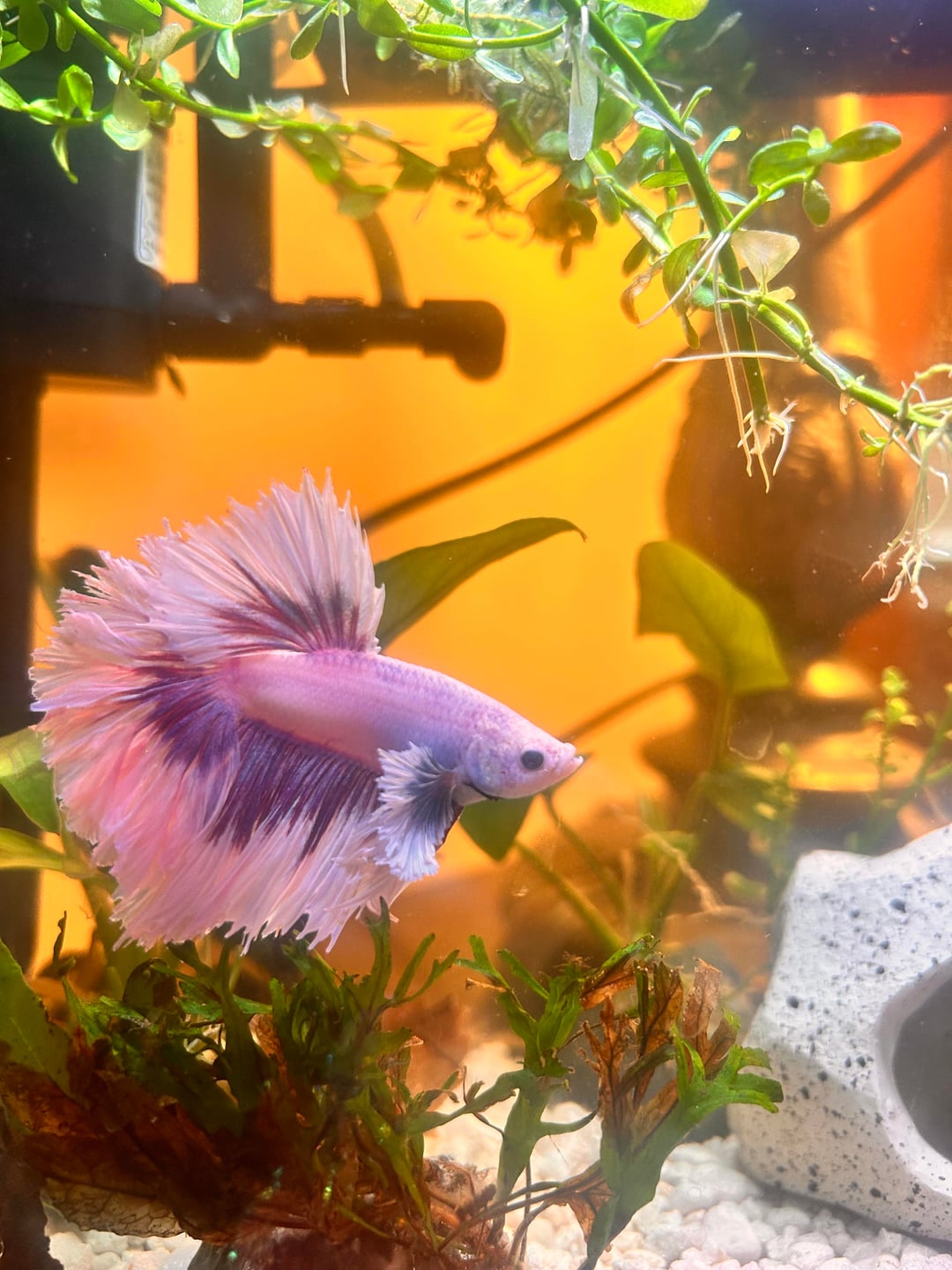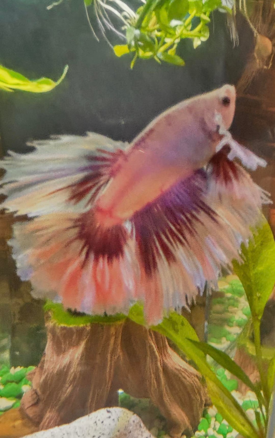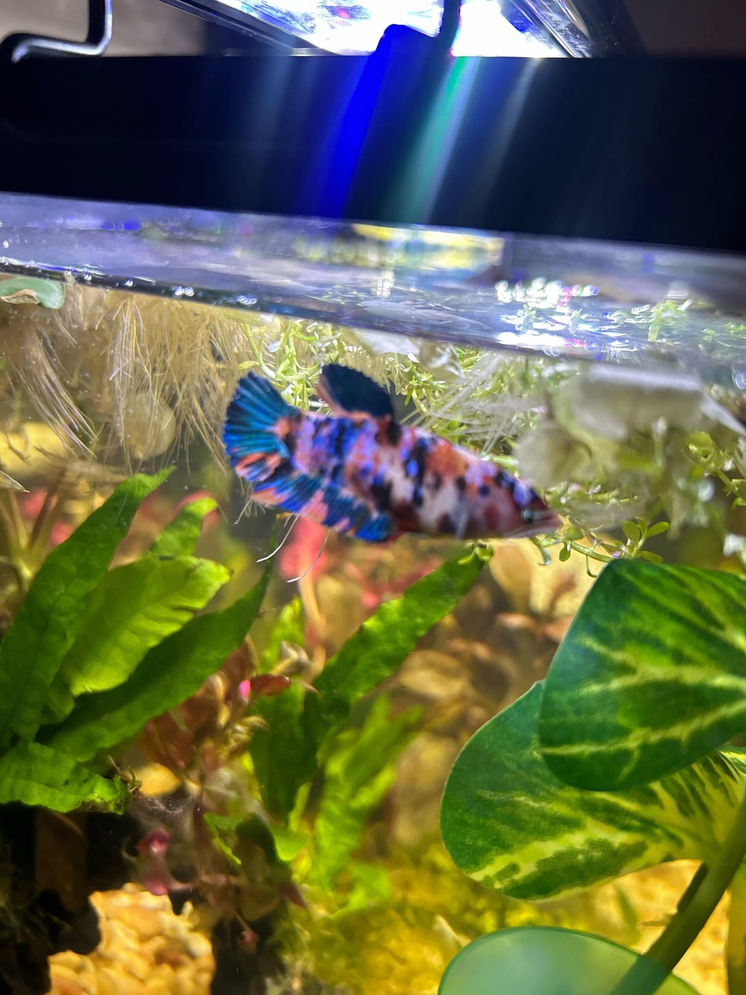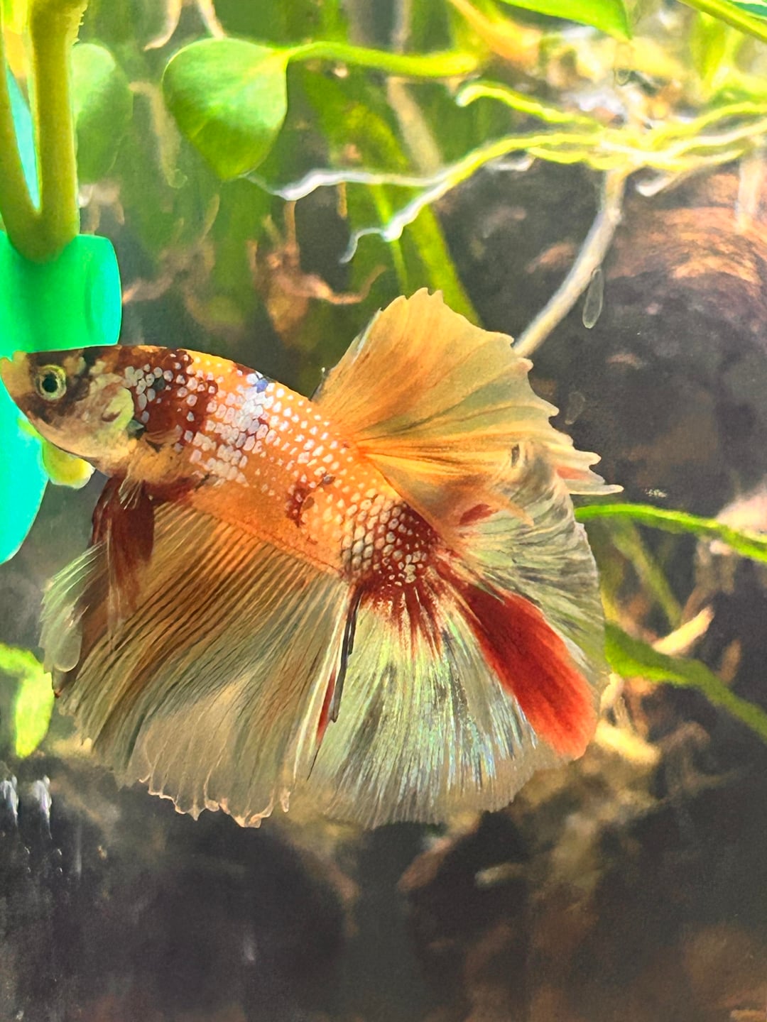 So the first betta is my newest memeber I don’t have a name for him yet. 2nd betta is ghost a rose tail dumbo and he’s beautiful and changes coloring all the time 3rd betta is Penelope she’s my female koi and wow has she changed she looked like a pink little fish stick when I got her. And last but not least is also a newer member she’s so small and came as a little bitty baby crown tail about the size of my thumb nail and no color at all now she’s filling in and becoming more and more red and fat lol 😂. I love my bettas and can’t help but saving them all of them come to me with no color and thin and sad and after two weeks they already look like different fish I love the transformation of bettas from sad and sick to big healthy and full of color and life. I’ll update with newer pictures once my newest male gets all of his colors and is not so clear. Help me name him.
