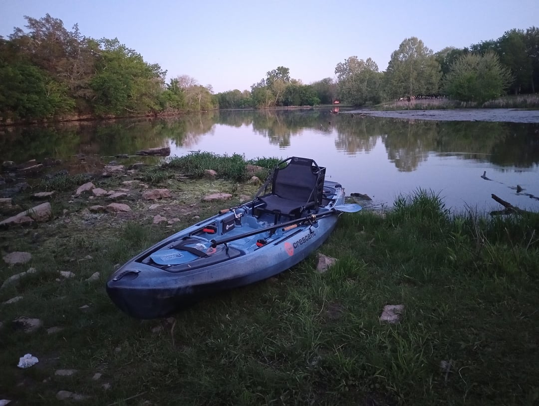 Got skunked but was mostly trying to get familiar with the new kayak. Never had one with a high position or even a stadium chair before. Hooked one bass but lost it. And already christened the new rig with some scratches from the rocky landing area 😅.