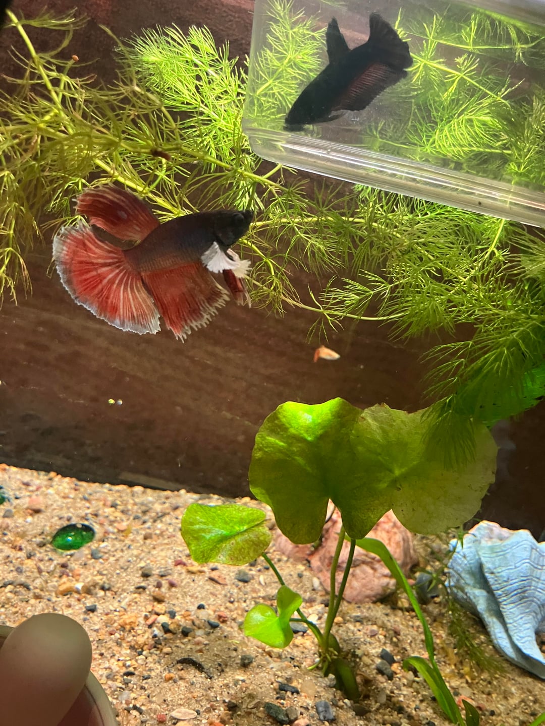 i occasionally let luna have a visit with the males for 5 ish minutes since i heard flaring was good for their fins but my dudes are super smart so flare sticks, mirrors, etc don’t work which is why i let luna visit. is this stressful for them? she never seems stressed or angry after but i just would like a second opinion. i NEVER take her out of the cup, and i NEVER leave her in longer then 20 minutes, usually its always 5-10 minutes. i see she also brightens up after this as well not just the dudes, but if it’s like a placebo effect or something i’d like to know.